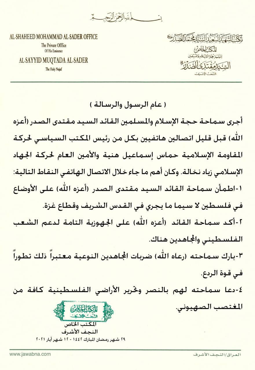 سياسةباتصالين مع قادة فلسطينيين .. الصدر يؤكد الجهوزية التامة لدعم الشعب الفلسطيني قبل 5 سنوات 1 مشاهدة شارك قد يهمك أيضا رياضة صفعة مدوية لريال مدريد.. المحكمة تحمي أسرار برشلونة في فضيحة نيجريرا قبل 8 ساعات 14 مشاهدات عربي ودولي بينها الهول.. سوريا تعلن سعيها لإنهاء مخيمات احتجاز المرتبطين بـ”داعش” قبل 9 ساعات 9 مشاهدات أمن بسبب خلافات عشائرية.. مقتل رجل خمسيني بـ(11) إطلاقة نارية ضمن قضاء القرنة في البصرة قبل 9 ساعات 15 مشاهدات عربي ودولي شمخاني: إيران مستعدة لسيناريوهات أوسع والمواجهة لن تقتصر على البحر قبل 9 ساعات 23 مشاهدات محليات السيد الصدر: من يستخدم الغناء والطرب والموسيقى محتجاً بإحياء ذكر أهل البيت فهو عاصٍ وينبغي مقاطعته قبل 10 ساعات 27 مشاهدات