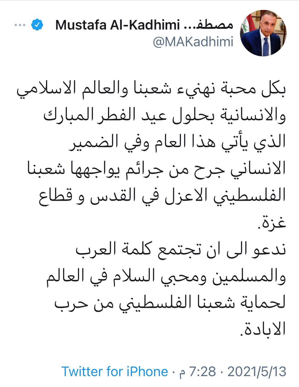 سياسةالكاظمي: ندعو الى ان تجتمع كلمة العرب والمسلمين ومحبي السلام لحماية شعبنا الفلسطيني قبل 5 سنوات 4 مشاهدات شارك قد يهمك أيضا أمن ميري: وزير الداخلية وجَّه بتكريم آمر قاطع نجدة الكندي ومنحه إجازة وإبداء المساعدة له قبل 5 دقائق 2 مشاهدات أمن الداخلية: التحليل الجنائي أثبت أن الصور المتداولة لآمر نجدة الكندي تم التلاعب بها قبل 7 دقائق 1 مشاهدة أمن الداخلية: لا نقف مع أي مخالف ونحو 5 آلاف ضابط ومنتسب تم طردهم من الخدمة قبل 15 دقيقة 4 مشاهدات أمن تأكيداً لما نشرته الرشيد.. الداخلية تعلن براءة آمر قاطع نجدة الكندي من التهم المنسوبة إليه قبل 18 دقيقة 4 مشاهدات عربي ودولي صحيفة إيرانية: ترامب حسم خيار الحرب لكنها لن تكون شاملة قبل 27 دقيقة 5 مشاهدات