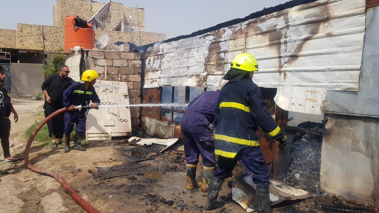 بالصور .. فرق الدفاع المدني تخمد حريقاً اندلع داخل مجمع سكني متجاوز وسط بابل