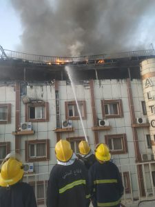 واضافت، ان “المفارز تمكنت من السيطرة على الحادث وإخماد ألسنة اللهب المتصاعدة من العمارة والفندق بكل مهنية وبوقت قياسي قصير بأستخدام عجلة (السنوركل) وإنقاذ النزلاء ونقلهم إلى مكان آمن”.