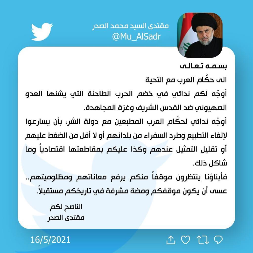 سياسةالصدر للحكام العرب المطبعين مع اسرائيل: سارعوا بالغاء التطبيع وطرد السفراء قبل 5 سنوات 2 مشاهدات شارك قد يهمك أيضا عربي ودولي الخارجية المصرية: ندين الانتهاكات الإسرائيلية المتكررة لوقف إطلاق النار في غزة قبل 19 دقيقة 3 مشاهدات أقتصاد انخفاض اسعار صرف الدولار مع الاغلاق قبل 58 دقيقة 8 مشاهدات عربي ودولي إعلام عبري: ترامب ينوي إعلان تشكيل “قوة الاستقرار” بغزة هذا الأسبوع قبل ساعتين 7 مشاهدات عربي ودولي مباحثات إماراتية أمريكية لشراء أصول لوك أويل الروسية في عدة دول بينها العراق قبل ساعتين 9 مشاهدات عربي ودولي الاتحاد الأوروبي: الوضع في سوريا لا يسمح بعودة واسعة للاجئين قبل ساعتين 9 مشاهدات