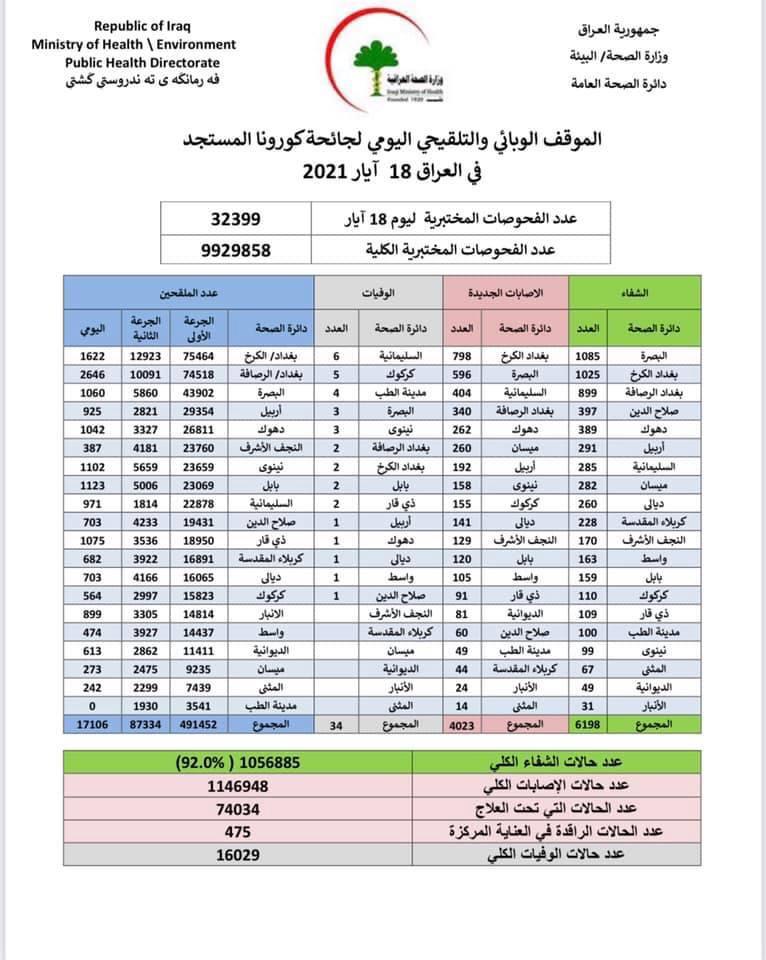 محلياتالصحة تعلن تسجيل 4023 اصابة جديدة بكورونا في عموم العراق قبل 5 سنوات 3 مشاهدات شارك قد يهمك أيضا عربي ودولي لاريجاني: على عكس أجواء الحرب الإعلامية المصطنعة فإن تشكيل هيكل للمفاوضات يتقدم قبل 14 دقيقة 4 مشاهدات سياسة رئيس الجمهورية يرحب باتفاق الحكومة السورية و”قسد” ويعده مهمًا لاستقرار المنطقة قبل 34 دقيقة 6 مشاهدات محليات اللجنة المشرفة على الزيارة الشعبانية تصدر عدة ارشادات وتوصيات وتدعو الزائرين الى الالتزام بها قبل 43 دقيقة 7 مشاهدات أمن رجل يقتل نجله الشاب ويقوم بالانتحار جنوب غربي بغداد قبل ساعة واحدة 8 مشاهدات أمن حملة أمنية.. اعتقال 185 مخالفًا لشروط الاقامة في جانب الرصافة من بغداد قبل ساعة واحدة 5 مشاهدات