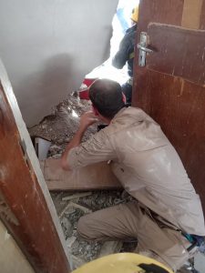 واوضحت، ان “فرق انقاذ الدفاع المدني استخدمت اجهزة ومعدات الانقاذ الهيدروليكية لتفتيت الكتل الكونكريتية وازالت الانقاض من فوق اجساد العاملين واخراجهما على قيد الحياة مع تأمين نقلهما الى المستشفى القريب لتلقى العلاج، حيث كانت اصابة احد العاملين خطرة في منطقة الرأس”.