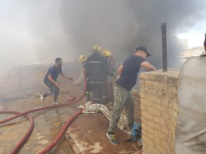 بالصور .. فرق الدفاع المدني تخمد حريقاً اندلع داخل خان قديم بمنطقة الشورجة وسط بغداد