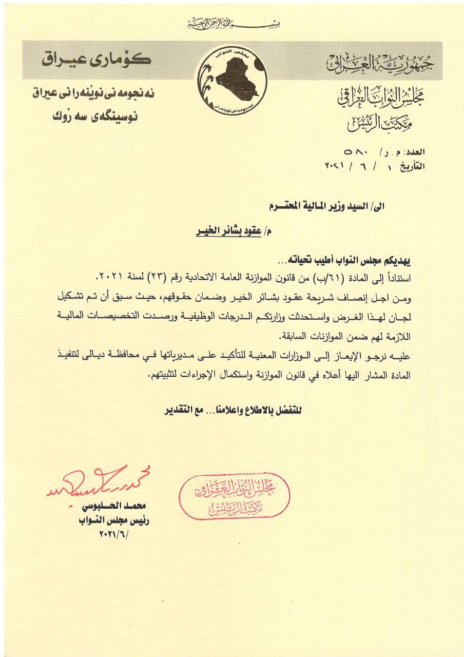 سياسةبالوثيقة .. الحلبوسي يخاطب المالية بشأن تثبيت عقود بشائر الخير في ديالى قبل 5 سنوات 9 مشاهدات شارك قد يهمك أيضا سياسة وفد الاطار التنسيقي والاتحاد الوطني يؤكدان أهمية حسم منصب رئاسة الجمهورية والمضي بإكمال الاستحقاقات الدستورية قبل 16 دقيقة 1 مشاهدة عربي ودولي نتنياهو: أي جهة تهاجم إسرائيل ستواجه نتائج لا يمكنها تحملها قبل 47 دقيقة 4 مشاهدات محليات اللجنة المنظمة للزيارة الشعبانية تعلن توفير نقلٍ مجاني للزائرين إلى كربلاء بدءًا من غد الثلاثاء قبل ساعة واحدة 9 مشاهدات أقتصاد التجارة: المباشرة بتوزيع مواد السلة الغذائية خلال الأسبوع الحالي قبل ساعة واحدة 7 مشاهدات عربي ودولي وزير الخارجية الأردني لنظيره الإيراني: المملكة لن تكون منطلقاً لأي عمل عسكري ضد إيران قبل ساعتين 6 مشاهدات