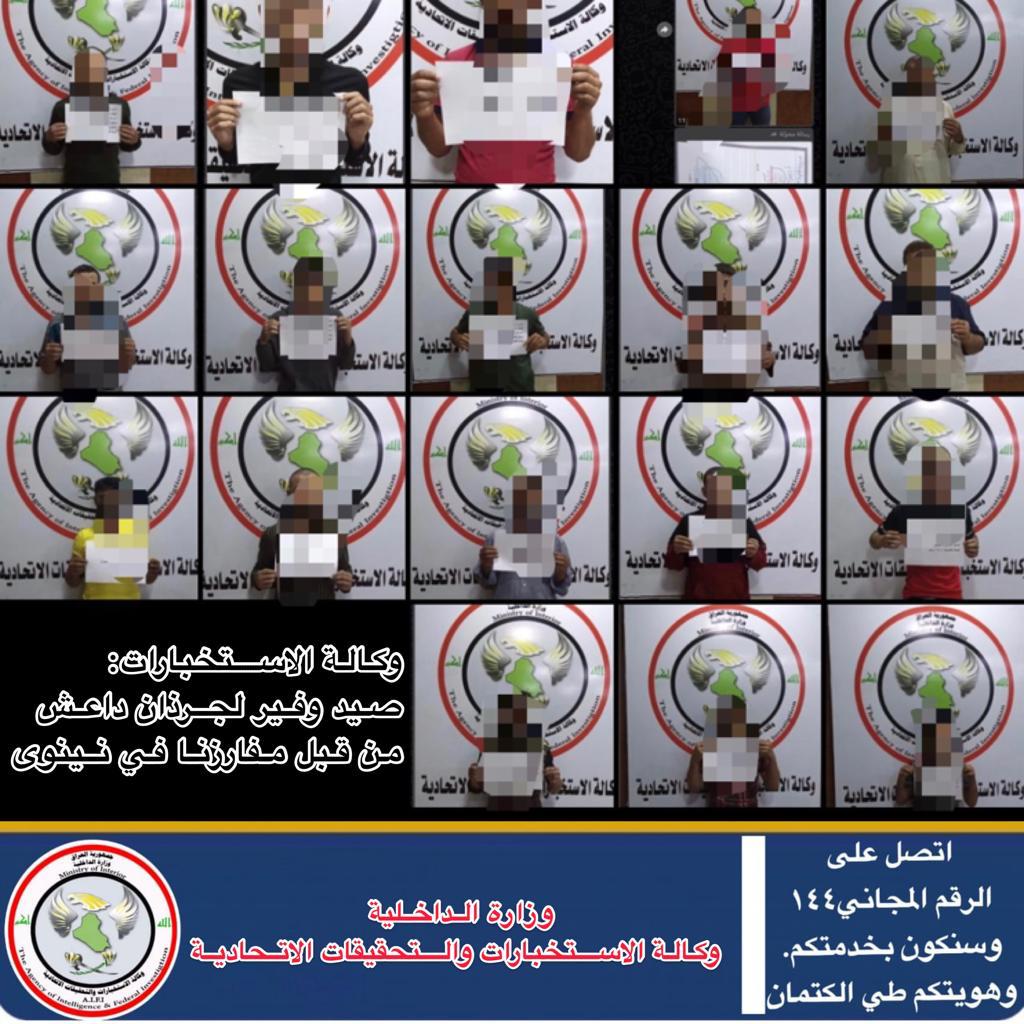 تمكنت وكالة الاستخبارات، اليوم الاربعاء، القبض على 18 متهماً بقضايا إرهابية في نينوى.
