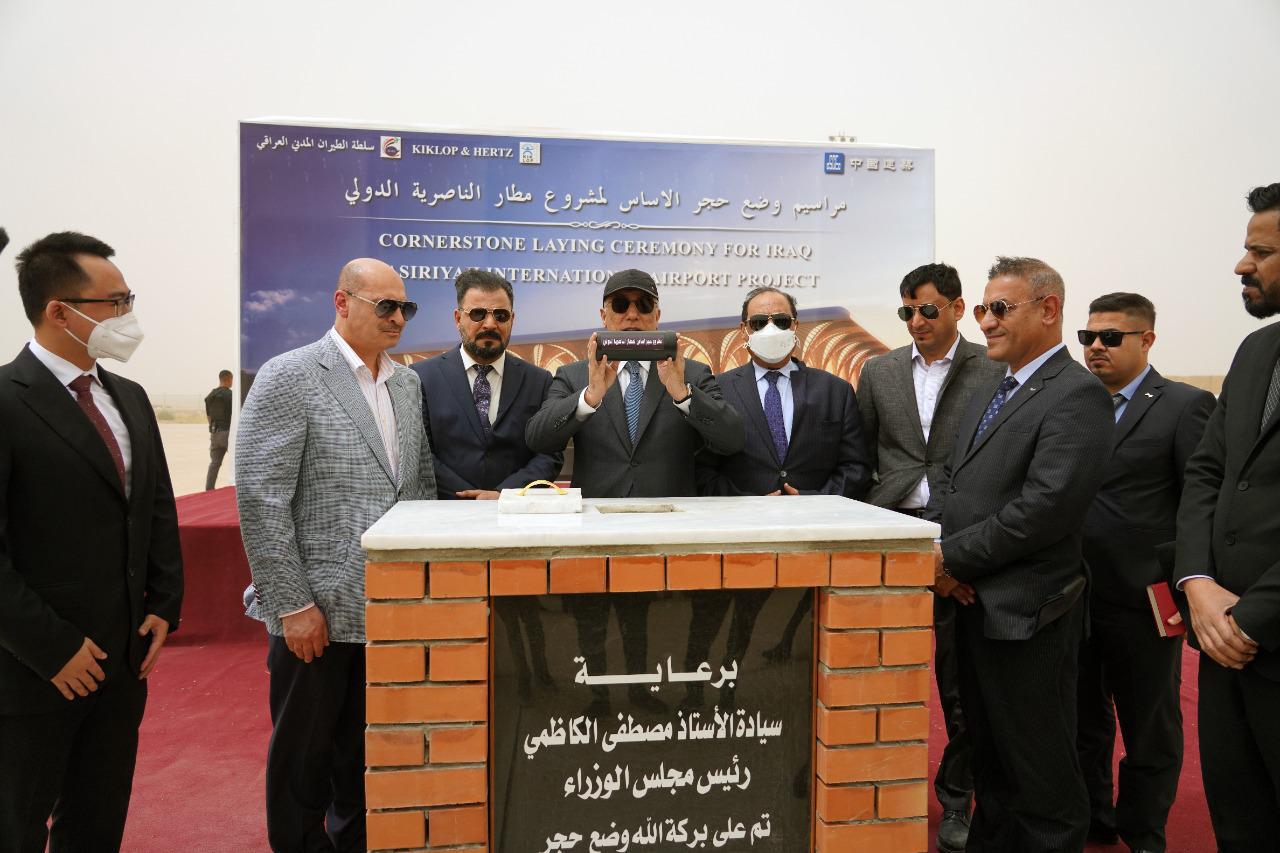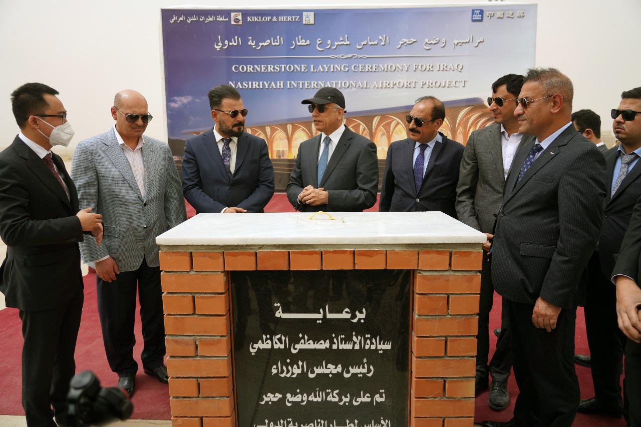 الكاظمي أثناء وضعه حجر الأساس لمطار الناصرية: ذي قار عانت من إهمال كبير ونعمل حالياً على تطويرها