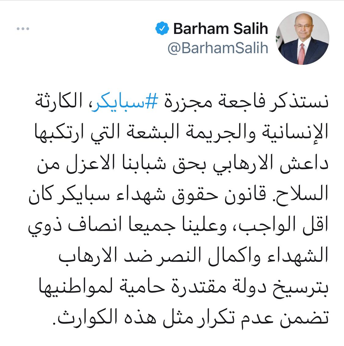 سياسةرئيس الجمهورية في ذكرى مجزرة سبايكر: قانون حقوق الشهداء كان اقل الواجب وعلينا جميعاً انصاف ذويهم قبل 5 سنوات 7 مشاهدات شارك قد يهمك أيضا مع ياسر عامر هل يصلح باراك ما افسده سافايا! قبل ساعتين 9 مشاهدات عربي ودولي ترامب: نجري مفاوضات مع ايران الان قبل 6 ساعات 12 مشاهدات عربي ودولي تعليق إسرائيلي على إسقاط الجيش الأمريكي لمسيّرة إيرانية في بحر العرب قبل 7 ساعات 26 مشاهدات محليات صلاح الدين تعطل الدوام في بلد والدجيل وطوزخورماتو وآمرلي بمناسبة الزيارة الشعبانية قبل 7 ساعات 18 مشاهدات عربي ودولي اعلام ايراني: نجاح مهمة طائرة مسيّرة للاستطلاع والمراقبة في المياه الدولية قبل 8 ساعات 11 مشاهدات