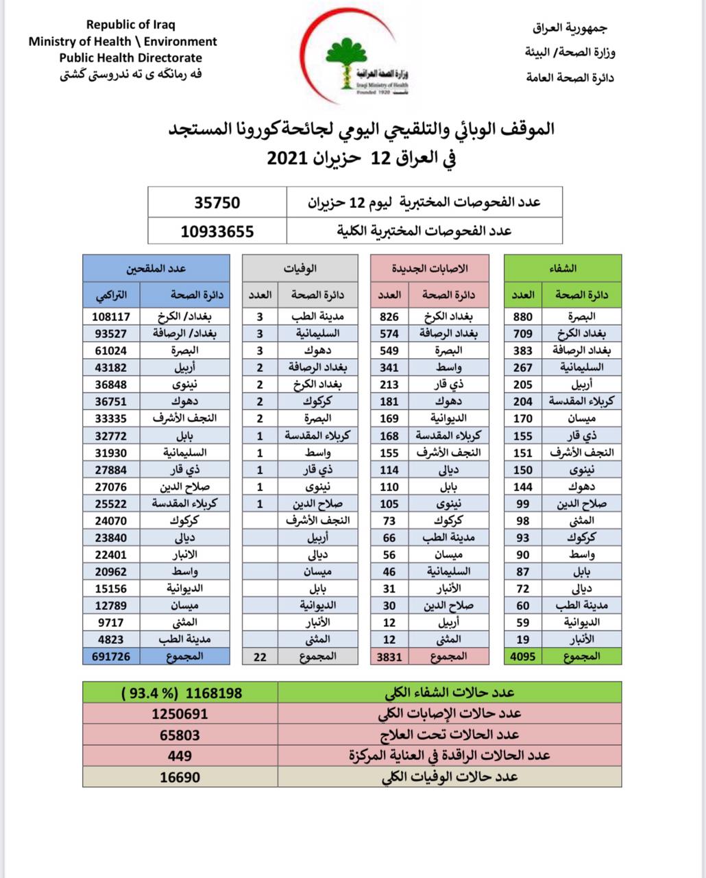 محلياتالصحة تعلن تسجيل 3831 اصابة جديدة بكورونا في عموم العراق قبل 5 سنوات 4 مشاهدات شارك قد يهمك أيضا أقتصاد أسعار النفط ترتفع إلى 67 دولاراً للبرميل بسبب مخاوف تصاعد التوتر في الشرق الأوسط قبل 17 دقيقة 4 مشاهدات مع ياسر عامر هل يصلح باراك ما افسده سافايا! قبل 5 ساعات 11 مشاهدات عربي ودولي ترامب: نجري مفاوضات مع ايران الان قبل 8 ساعات 14 مشاهدات عربي ودولي تعليق إسرائيلي على إسقاط الجيش الأمريكي لمسيّرة إيرانية في بحر العرب قبل 9 ساعات 57 مشاهدات محليات صلاح الدين تعطل الدوام في بلد والدجيل وطوزخورماتو وآمرلي بمناسبة الزيارة الشعبانية قبل 9 ساعات 39 مشاهدات