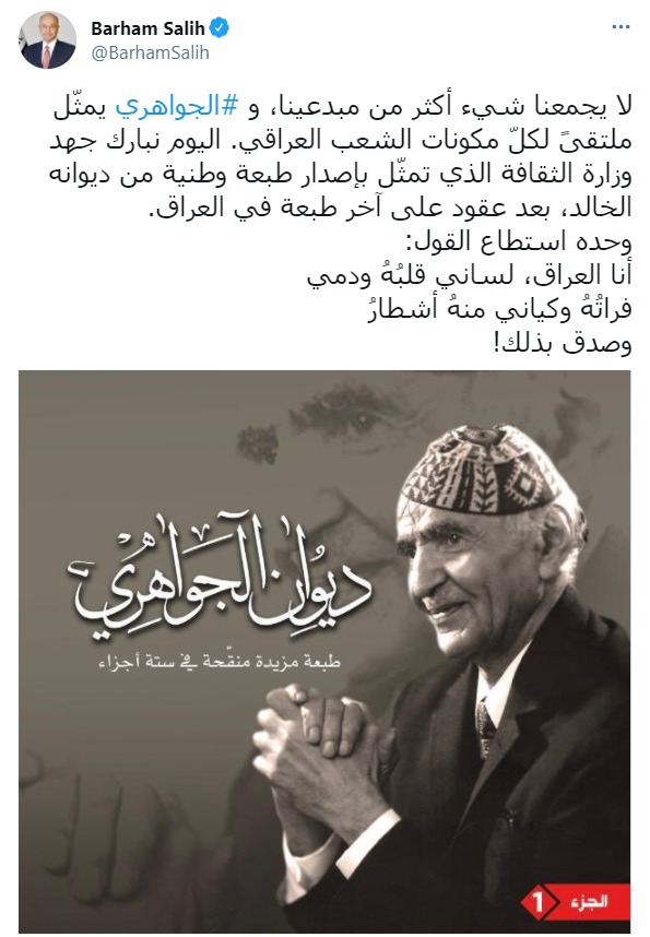 سياسةرئيس الجمهورية يبارك اصدار طبعة وطنية لديوان الشاعر العراقي محمد مهدي الجواهري قبل 5 سنوات 25 مشاهدات شارك قد يهمك أيضا عربي ودولي منظمة العفو الدولية تعلق على اغتيال سيف الإسلام القذافي قبل 30 دقيقة 4 مشاهدات أقتصاد انخفاض اسعار صرف الدولار مع الاغلاق قبل 43 دقيقة 7 مشاهدات عربي ودولي إعلام إيراني: المفاوضات مع أمريكا ستعقد الجمعة في مسقط بشأن البرنامج النووي ورفع العقوبات فقط قبل 50 دقيقة 5 مشاهدات رياضة بنزيما يشبه الهلال بريال مدريد بعد أول مران له مع الفريق السعودي قبل ساعة واحدة 7 مشاهدات عربي ودولي عائلة القذافي تتسلم جثمان سيف الإسلام في مدينة الزنتان قبل ساعتين 7 مشاهدات