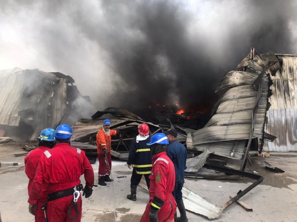 وقالت المديرية، في بيان تلقته الرشيد، ان “فرق الدفاع المدني سيطرت على حادث حريق اندلع في مخزنين كبيرين مشيدة من صفائح (الچبنكو) تحتوي على اجهزة كهربائية مستأجرة من قبل المواطنين تابعة الى شركة الصناعات الخفيفة في منطقة الزعفرانية جنوب شرقي بغداد”.