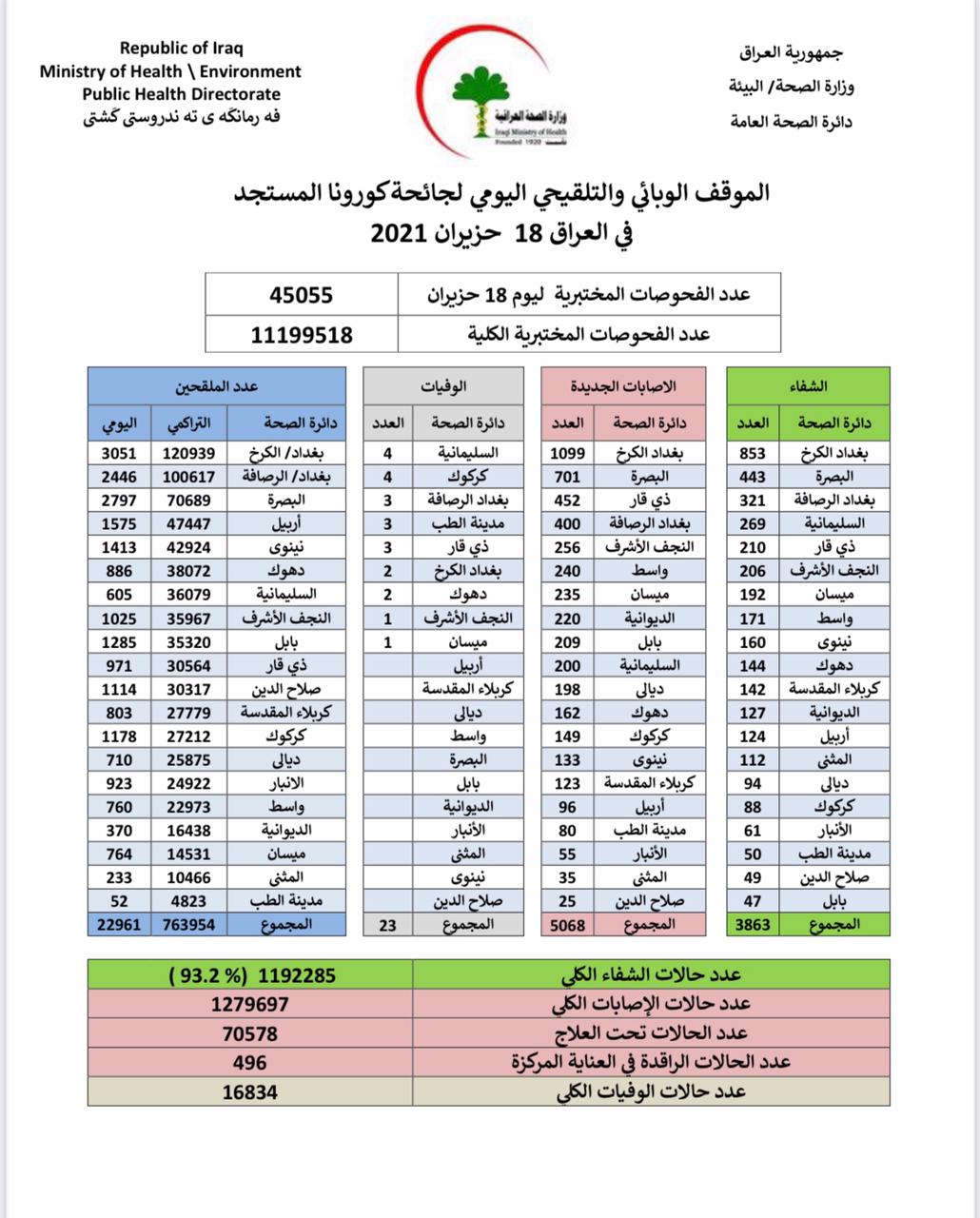 محلياتالصحة تعلن تسجيل 5068 اصابة جديدة بكورونا في عموم العراق قبل 5 سنوات 4 مشاهدات شارك قد يهمك أيضا عربي ودولي القضاء الأمريكي يحكم بالسجن مدى الحياة على رجل حاول اغتيال الرئيس دونالد ترامب قبل 8 ساعات 12 مشاهدات عربي ودولي أكسيوس: عودة التحضير لعقد المفاوضات النووية بين واشنطن وطهران في مسقط قبل 9 ساعات 9 مشاهدات عربي ودولي وزير الخارجية الإيراني: المحادثات النووية مع الولايات المتحدة ستعقد في مسقط الجمعة المقبل قبل 9 ساعات 7 مشاهدات عربي ودولي رئيس الأركان الإيراني: عززنا قدرة الردع عبر تحديث الصواريخ الباليستية في جميع جوانبها التقنية قبل 9 ساعات 15 مشاهدات عربي ودولي ترامب: سنرسل المقاتلات مرة أخرى اذا حاولت ايران إعادة برنامجها النووي قبل 10 ساعات 12 مشاهدات