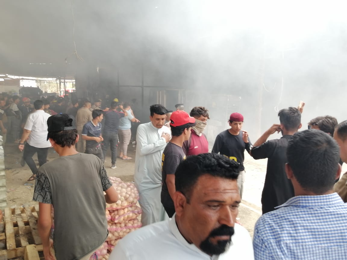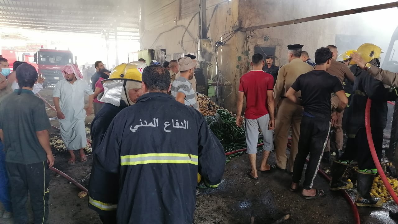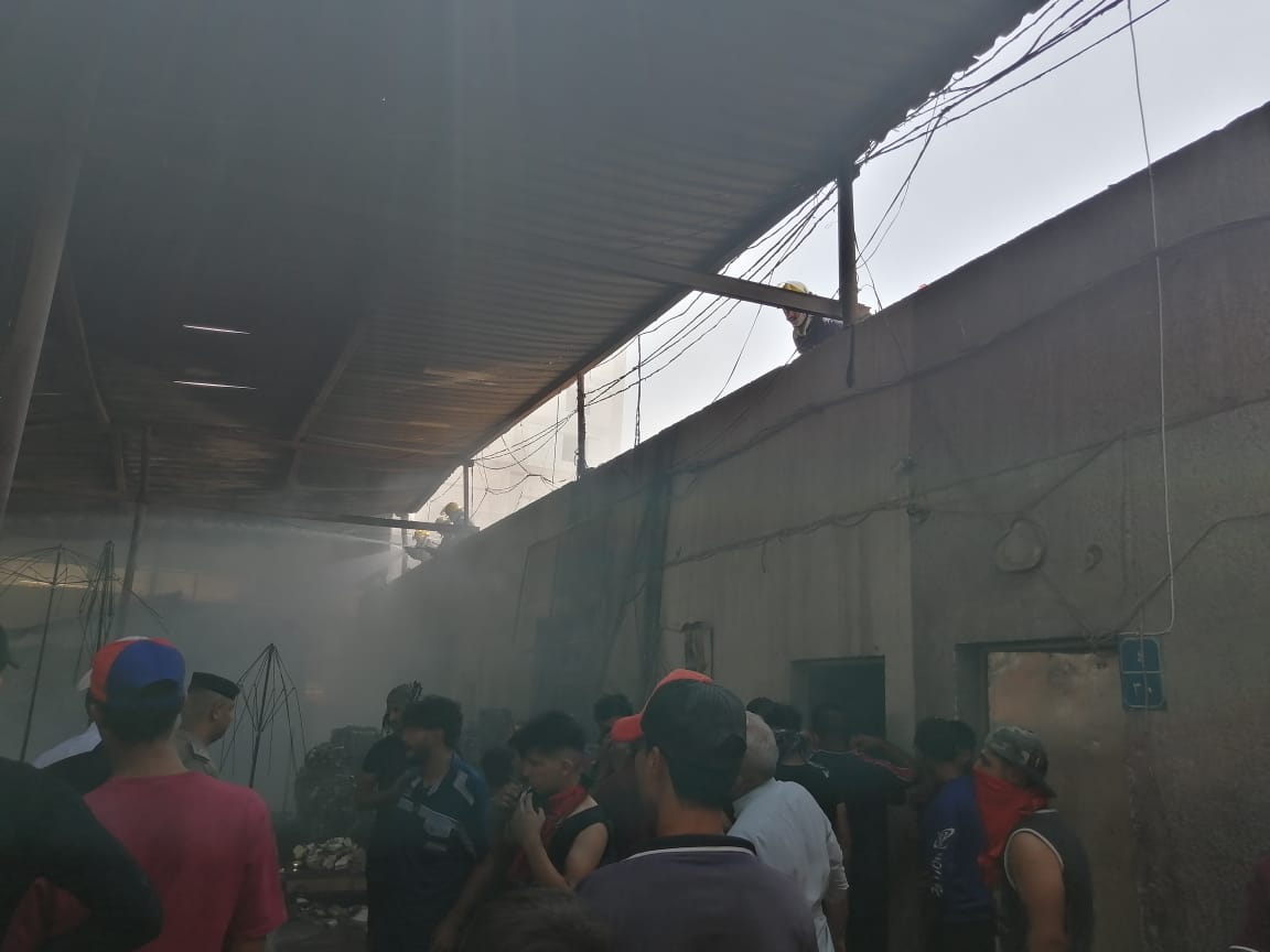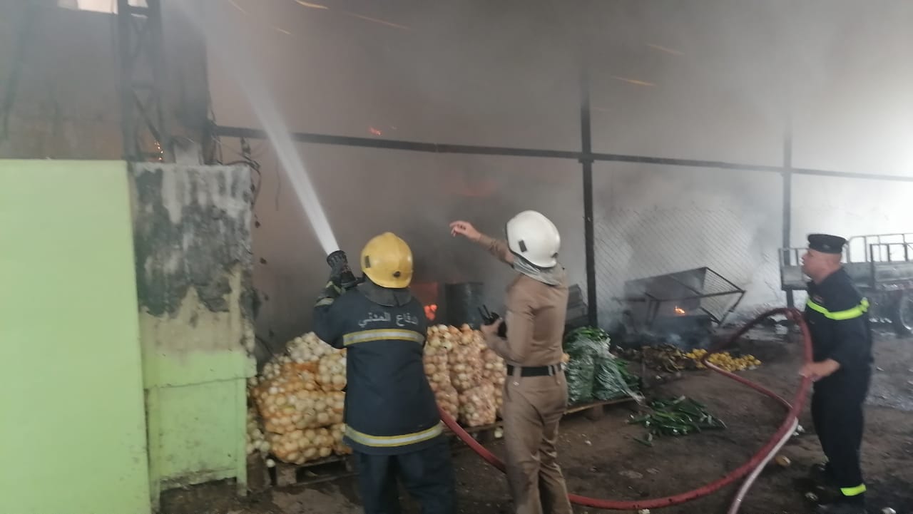 اندلع حريق، اليوم الثلاثاء، في عدة مكاتب لبيع الخضار داخل علوة وسط النجف.