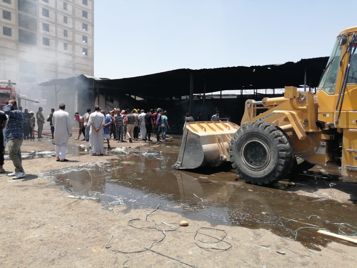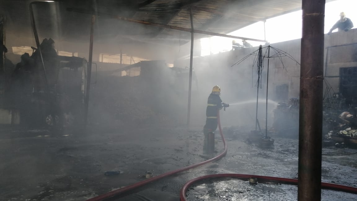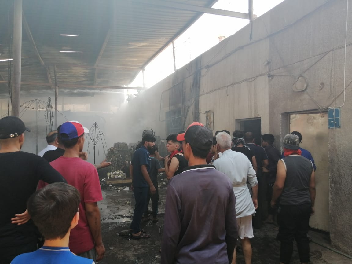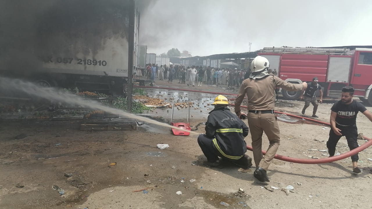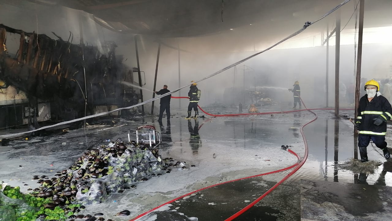 اندلع حريق، اليوم الثلاثاء، في عدة مكاتب لبيع الخضار داخل علوة وسط النجف.