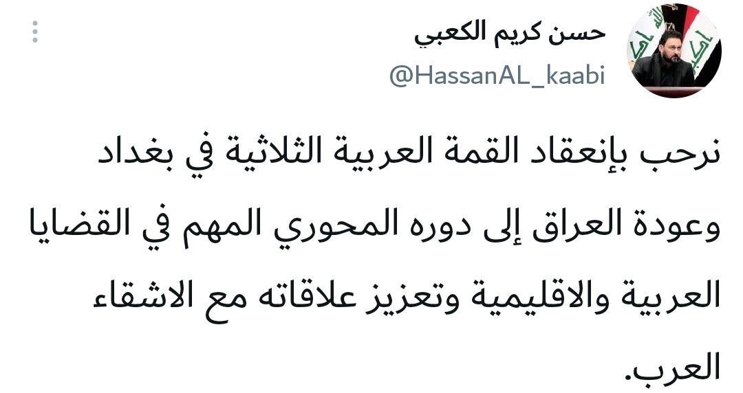 سياسةالكعبي: نرحب بانعقاد القمة الثلاثية في بغداد وعودة العراق الى دوره المحوري قبل 5 سنوات 6 مشاهدات شارك قد يهمك أيضا الاخبار العاجلة وزارة المالية: رواتب الموظفين والمتقاعدين مؤمنة قبل 3 ساعات 12 مشاهدات الاخبار العاجلة وزارة المالية تنفي التصريحات التي تتحدث بعدم وجود رواتب للموظفين في الشهر المقبل قبل 3 ساعات 11 مشاهدات عربي ودولي البيت الأبيض: الرئيس ترامب يرغب في التوصل إلى اتفاق بشأن إيران قبل 4 ساعات 9 مشاهدات عربي ودولي غداة المفاوضات النووية.. وزير الخارجية الإيراني ينشر مقالًا قديمًا لنتنياهو عن صدام حسين قبل 4 ساعات 11 مشاهدات عربي ودولي الخارجية الإيرانية: نأمل أن يشارك الجانب الأميركي بمفاوضات مسقط بمسؤولية وواقعية وجدية قبل 6 ساعات 9 مشاهدات