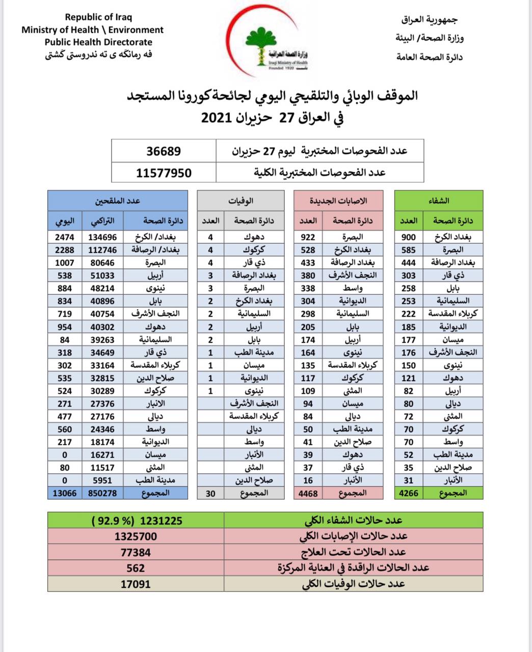 محلياتالصحة تعلن تسجيل 4468 اصابة جديدة بكورونا في عموم العراق قبل 5 سنوات 4 مشاهدات شارك قد يهمك أيضا الاخبار العاجلة وزارة المالية: رواتب الموظفين والمتقاعدين مؤمنة قبل 7 ساعات 17 مشاهدات الاخبار العاجلة وزارة المالية تنفي التصريحات التي تتحدث بعدم وجود رواتب للموظفين في الشهر المقبل قبل 7 ساعات 20 مشاهدات عربي ودولي البيت الأبيض: الرئيس ترامب يرغب في التوصل إلى اتفاق بشأن إيران قبل 8 ساعات 10 مشاهدات عربي ودولي غداة المفاوضات النووية.. وزير الخارجية الإيراني ينشر مقالًا قديمًا لنتنياهو عن صدام حسين قبل 8 ساعات 13 مشاهدات عربي ودولي الخارجية الإيرانية: نأمل أن يشارك الجانب الأميركي بمفاوضات مسقط بمسؤولية وواقعية وجدية قبل 10 ساعات 9 مشاهدات