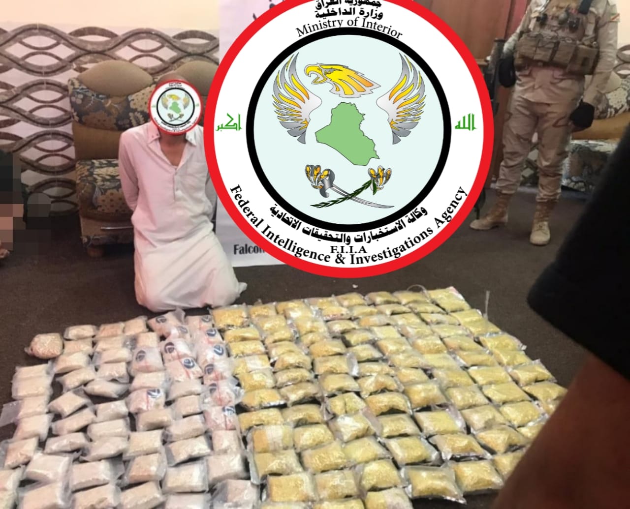 في الوقت الذي يحاول فيها تجار المخدرات نشر سمومهم بين ابناء المجتمع العراقي، يقف الأبطال في ألاجهزة الأمنية لهم بالمرصاد، من بينهم الشجعان في وكالة الاستخبارات والتحقيقات الاتحادية ، حيث تمكنت مفارز الوكالة وبعملية نوعية استندت إلى معلومات دقيقة، من القاء القبض على احد تجار المخدرات، بعد أن حاول إدخال كميات كبيرة جداً من الحبوب المخدرة والمؤثرات العقلية، بطريقة ماكرة داخل إطار العجلة التي كان يستقلها، الا ان العمل الاستخباري المكثف مكن رجال وكالة الاستخبارات من احباط هذه العملية، وإلقاء القبض عليه، في قضاء القائم قادماً من الأراضي السورية الى الأراضي العراقية ، حيث اتخذت بحقه الاجراءات القانونية.