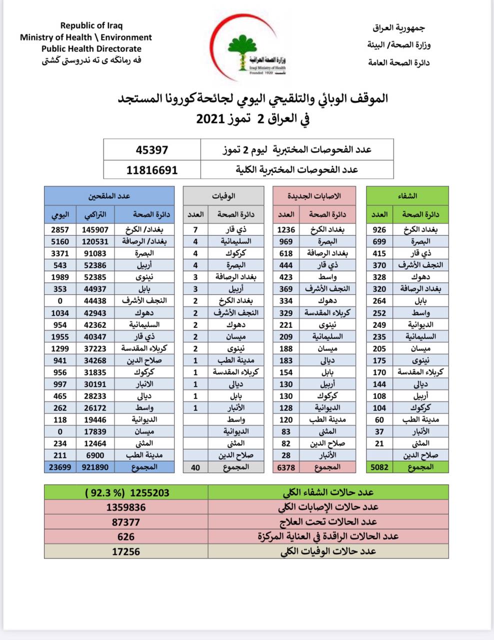 محلياتالصحة تعلن تسجيل 40 وفاة بكورونا و 5082 حالة شفاء من الفيروس قبل 5 سنوات 5 مشاهدات شارك قد يهمك أيضا عربي ودولي واشنطن توافق على مبيعات محتملة لمعدات عسكرية لأوكرانيا بقيمة 185 مليون دولار قبل 45 دقيقة 4 مشاهدات عربي ودولي بانسحاب من المدن ودمج عسكري.. دمشق و”قسد” تبدآن تنفيذ اتفاق الحسكة قبل ساعة واحدة 9 مشاهدات عربي ودولي “رويترز”: طهران ترفض طلب واشنطن وقف تخصيب اليورانيوم خلال محادثات مسقط قبل ساعة واحدة 11 مشاهدات أمن مصدر للرشيد: عدد سجناء داعش المنقولين من سوريا إلى العراق بلغ 2250 سجيناً بينهم عراقيون وسوريون قبل ساعتين 11 مشاهدات سياسة السيد الصدر بشأن الانفجار داخل أحد مساجد باكستان: يا أتباع فرعون وأصحاب الأخدود كفوا أيديكم ومفخخاتكم عنا قبل ساعتين 9 مشاهدات