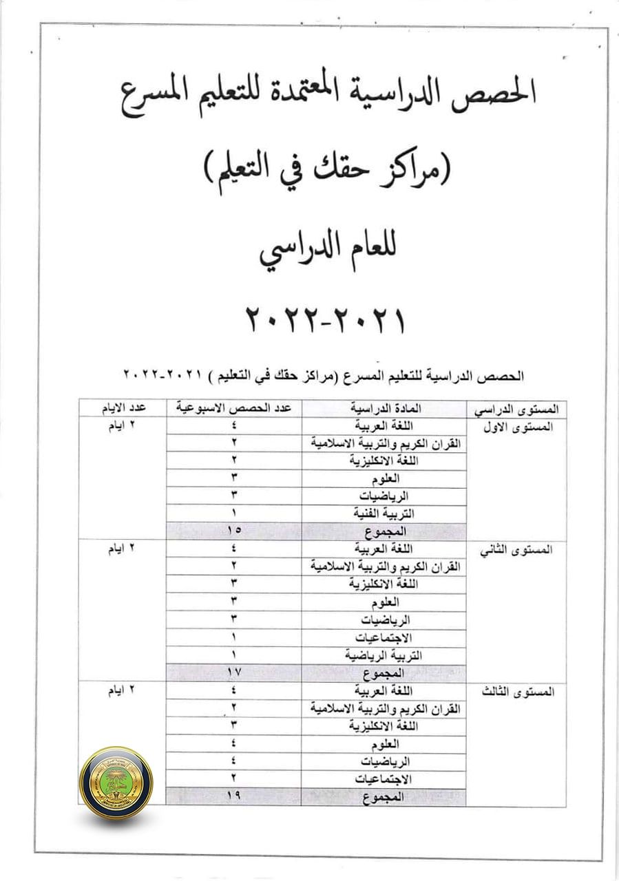 قراءة: وزارة التربية تعلن الخطة الدراسية الخاصة لمدارس التعليم المسرع