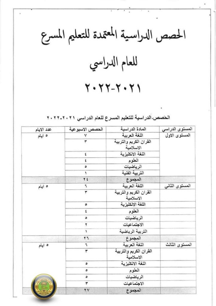 وزارة التربية تعلن الخطة الدراسية الخاصة لمدارس التعليم المسرع