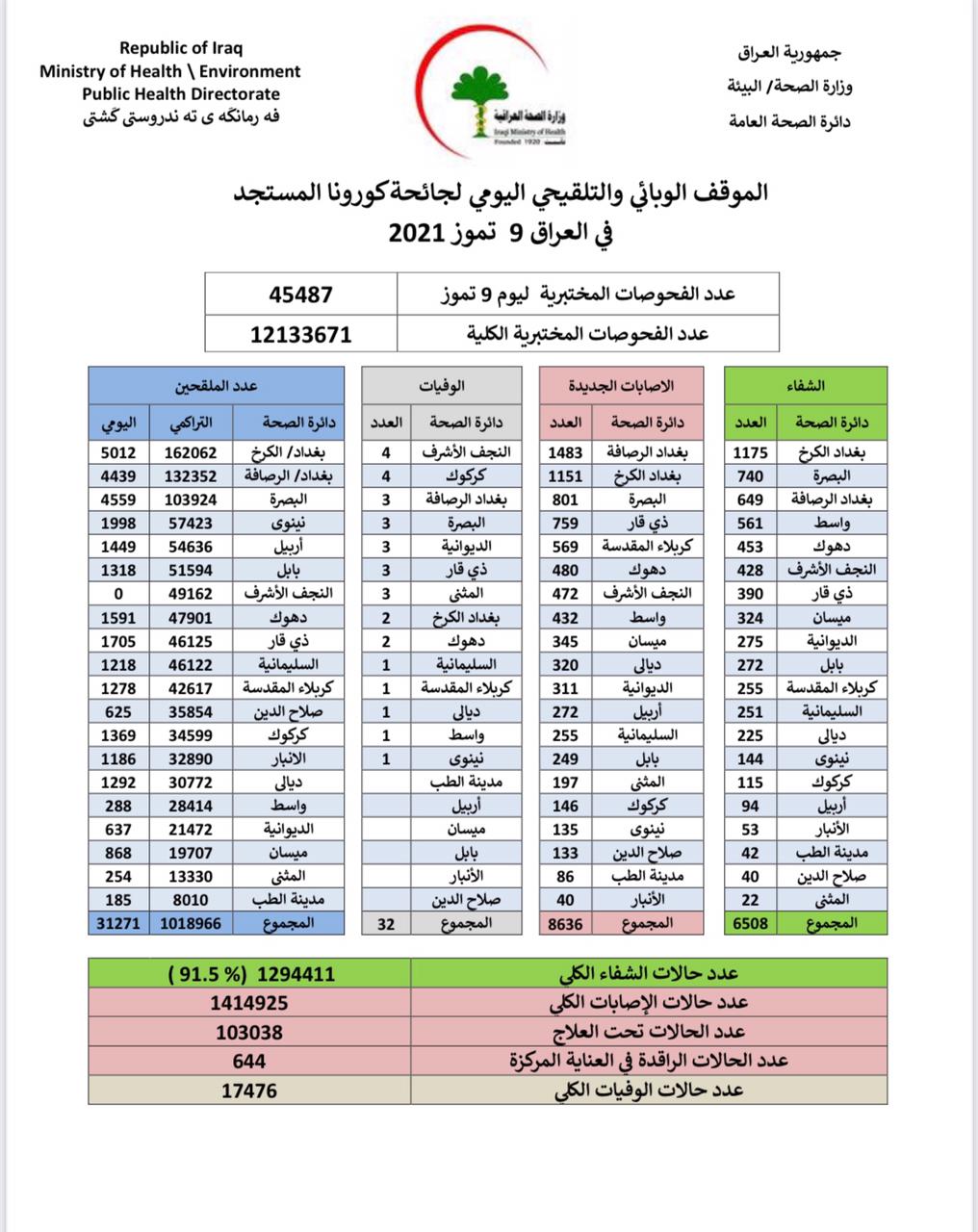 محلياتالصحة تعلن تسجيل 8636 اصابة جديدة بكورونا في عموم العراق قبل 5 سنوات 2 مشاهدات شارك قد يهمك أيضا عربي ودولي تستغرق 10 سنوات.. السفير الأمريكي لدى إسرائيل يكشف مراحل اعادة اعمار قطاع غزة قبل 3 دقائق 2 مشاهدات سياسة البرلمان ينشر جدول اعمال جلسة الاثنين المقبل قبل 56 دقيقة 8 مشاهدات الاخبار العاجلة شرطة الكرخ تطيح بمتهم سرق 45 مليون دينار من منفذ تجاري بطريقة احترافية في بغداد قبل ساعة واحدة 11 مشاهدات محليات النفط تنفي وجود أزمة في تجهيز البنزين وتؤكد إنتاج 30 مليون لتر يومياً قبل ساعتين 11 مشاهدات عربي ودولي رئيس الاركان الايراني: لن نبدأ حرباً لكننا مستعدون للدفاع عن أمننا وأنفسنا قبل ساعتين 8 مشاهدات