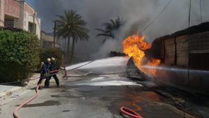 واضافت، ان “مديرية الدفاع المدني استنفرت جهودها في محاولة للسيطرة على النيران ومنع امتدادها للابنية المجاورة”.