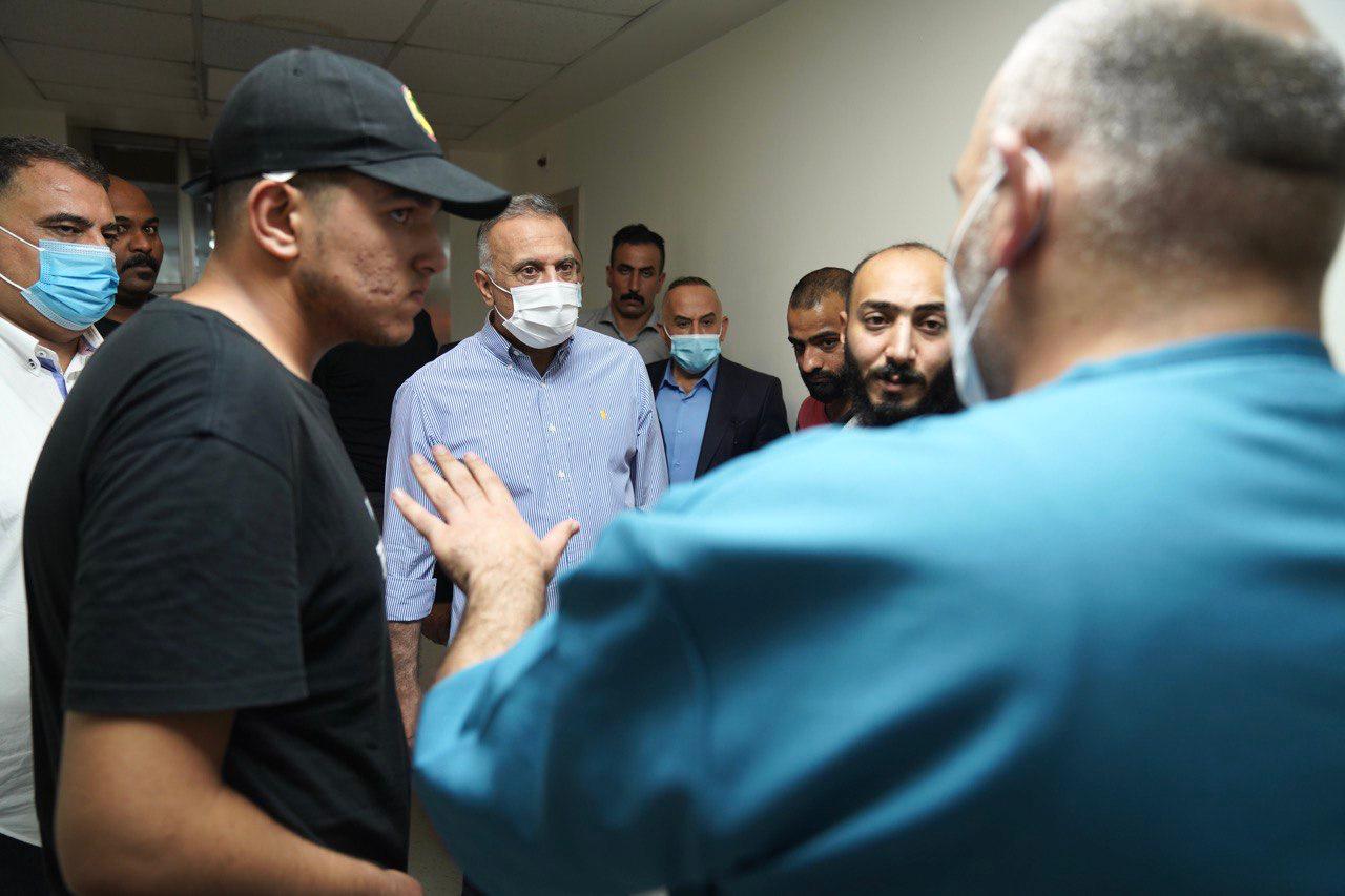 بالصور .. الكاظمي يطمئن على صحة الناشط علي المگدام في احدى مستشفيات بغداد