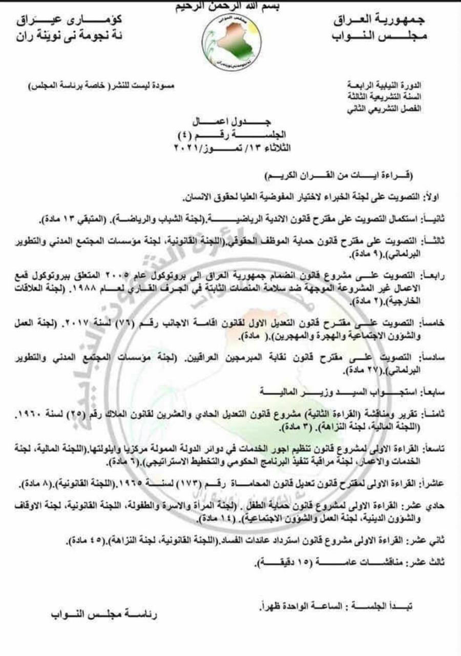 سياسةجدول اعمال مجلس النواب لجلسة غد الثلاثاء (وثيقة) قبل 5 سنوات 3 مشاهدات شارك قد يهمك أيضا رياضة في سن الـ41.. الوجهات الخمسة المحتملة لـ”رونالدو” للرحلة الاخيرة بمسيرته الكروية قبل 6 ساعات 14 مشاهدات عربي ودولي القيادة المركزية الامريكية: كوشنر وويتكوف يزوران حاملة الطائرات “لينكولن” في بحر العرب قبل 6 ساعات 10 مشاهدات أمن اعتقال متهم هارب من سجن مكافحة إجرام ديالى قبل 6 ساعات 14 مشاهدات الثامنة المالكي يجهّز البديل قبل 6 ساعات 17 مشاهدات عربي ودولي تستغرق 10 سنوات.. السفير الأمريكي لدى إسرائيل يكشف مراحل اعادة اعمار قطاع غزة قبل 7 ساعات 13 مشاهدات