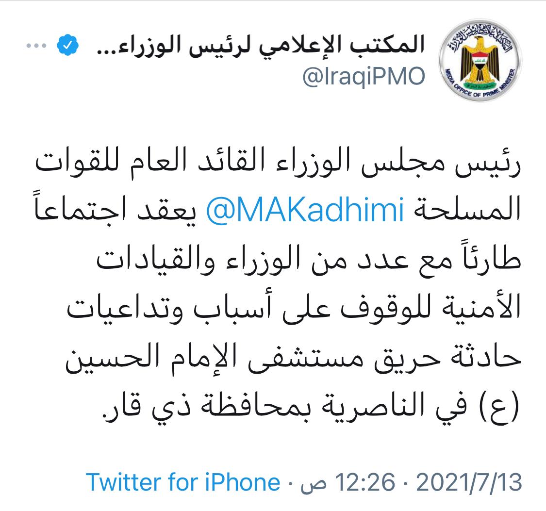 سياسةالكاظمي يعقد اجتماعاً طارئاً بعد حريق مستشفى الحسين في ذي قار قبل 5 سنوات 7 مشاهدات شارك قد يهمك أيضا رياضة في سن الـ41.. الوجهات الخمسة المحتملة لـ”رونالدو” للرحلة الاخيرة بمسيرته الكروية قبل 9 ساعات 18 مشاهدات عربي ودولي القيادة المركزية الامريكية: كوشنر وويتكوف يزوران حاملة الطائرات “لينكولن” في بحر العرب قبل 10 ساعات 12 مشاهدات أمن اعتقال متهم هارب من سجن مكافحة إجرام ديالى قبل 10 ساعات 14 مشاهدات الثامنة المالكي يجهّز البديل قبل 10 ساعات 19 مشاهدات عربي ودولي تستغرق 10 سنوات.. السفير الأمريكي لدى إسرائيل يكشف مراحل اعادة اعمار قطاع غزة قبل 11 ساعة 13 مشاهدات