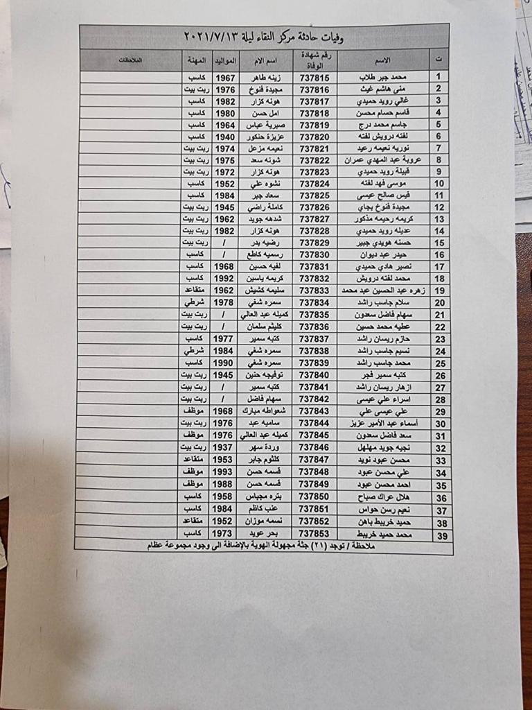 محلياتبالوثيقة .. اسماء شهداء فاجعة مستشفى الحسين في الناصرية قبل 5 سنوات 9 مشاهدات شارك قد يهمك أيضا أمن الاستخبارات العسكرية تحبط تهريب مواد إلى كركوك قبل 11 دقيقة 2 مشاهدات رياضة درجال: المنتخب الوطني سيعسكر في قارة أمريكا ولا توقف للدوري بأيام الفيفا قبل 35 دقيقة 7 مشاهدات عربي ودولي وزير خارجية إسرائيل يحذر من صواريخ إيران الباليستية: تهددنا قبل ساعة واحدة 9 مشاهدات أمن جنايات نينوى: الإعدام بحق طبيب حرق زوجته في الموصل قبل ساعتين 9 مشاهدات عربي ودولي رئيس الحكومة اللبنانية: الدولة ستعود بكل إمكانياتها وطاقتها إلى الجنوب قبل ساعتين 10 مشاهدات