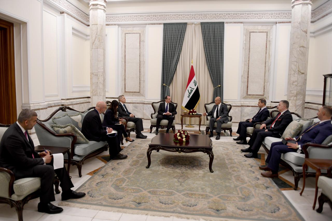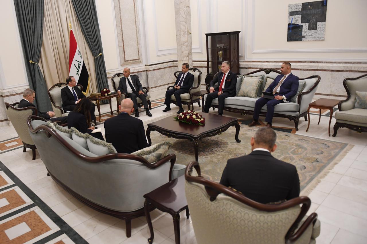 استقبل رئيس الجمهورية برهم صالح، اليوم الخميس 15 تموز 2021 في قصر بغداد، منسق مجلس الأمن القومي الأمريكي لشؤون الشرق الأوسط وشمال أفريقيا السيد بريت مكغورك والوفد المرافق له.