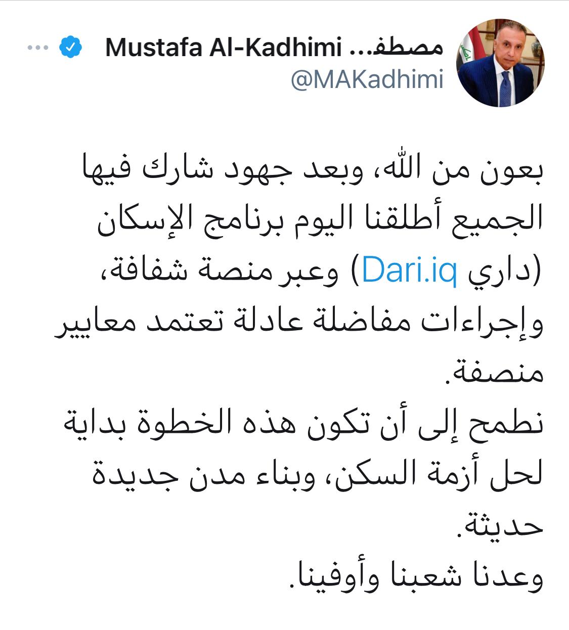 سياسةالكاظمي يعلن اطلاق برنامج الاسكان (داري) قبل 5 سنوات 3 مشاهدات شارك رابط الاستمارة https://dari.iq/ قد يهمك أيضا الحكم الرابع التحكيم في مهب الريح.. إيقاف رسمي واستقالة لم تكتمل قبل 4 ساعات 11 مشاهدات الاخبار العاجلة إدارة الدولة يؤكد دعمه للإجراءات القانونية والقضائية بشأن سجناء داعش المنقولين من سوريا قبل 5 ساعات 19 مشاهدات سياسة ائتلاف إدارة الدولة يشدد على ضرورة مساندة الإصلاحات الاقتصادية التي تبنتها الحكومة قبل 5 ساعات 12 مشاهدات سياسة ائتلاف ادارة الدولة يعرب عن ترحيبه ودعمه للمفاوضات بين الولايات المتحدة وايران قبل 5 ساعات 11 مشاهدات مع ياسر عامر المالكي عقدة الاطار! قبل 5 ساعات 13 مشاهدات