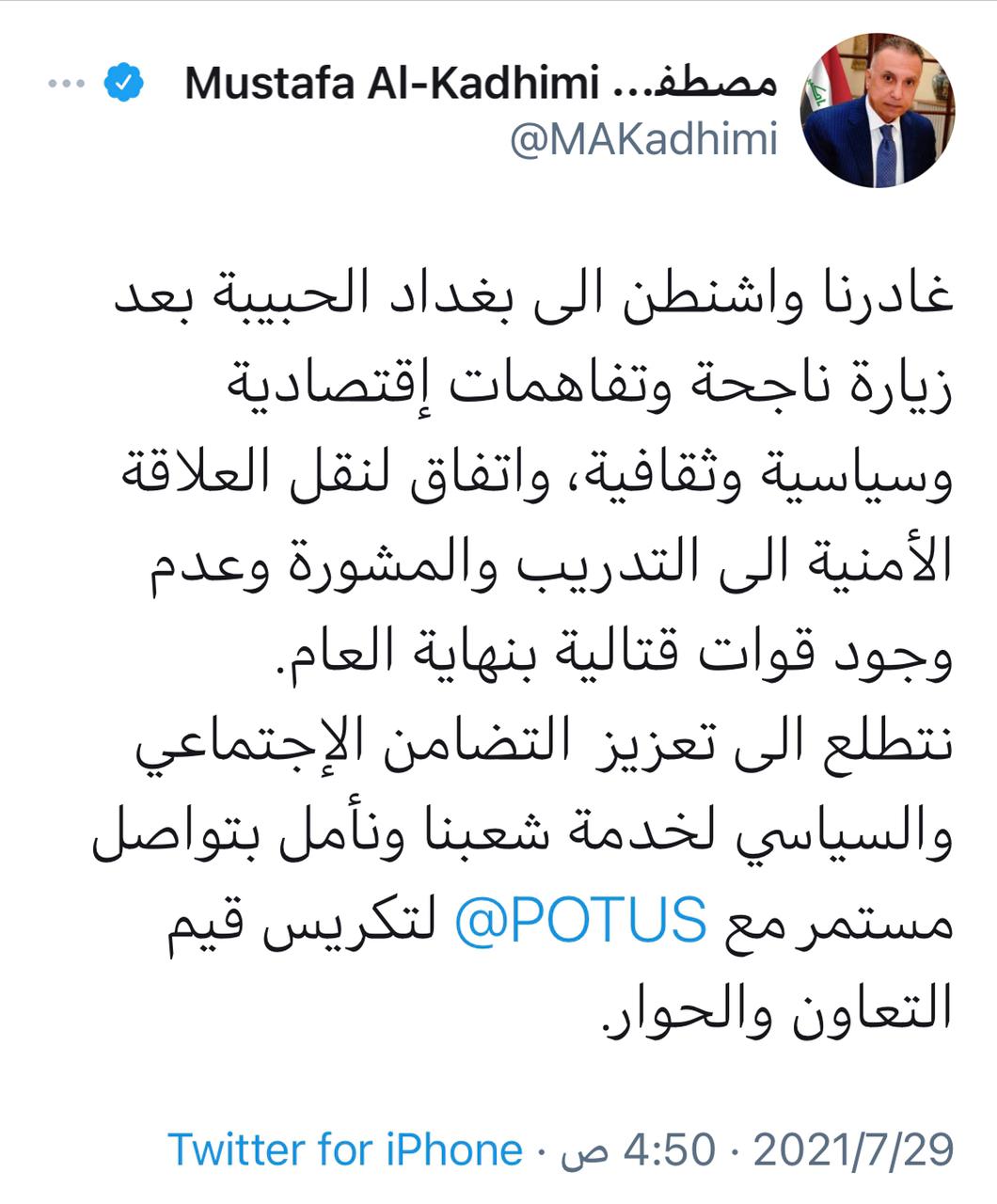 سياسةالكاظمي يغادر واشنطن ويعلن الاتفاق على عدم وجود قوات قتالية نهاية العام قبل 5 سنوات 8 مشاهدات شارك قد يهمك أيضا سياسة الأردن يؤكد استعداده للتعاون بملف نقل سجناء داعش من سوريا إلى العراق قبل 13 دقيقة 4 مشاهدات سياسة العراق يتقدم (28) درجة في تقرير مؤشر مدركات الفساد قبل 40 دقيقة 9 مشاهدات عربي ودولي ماكرون: إدارة ترامب معادية للاتحاد الأوروبي وترغب في تفكيكه قبل 53 دقيقة 7 مشاهدات محليات التجار يتظاهرون أمام مجلس القضاء احتجاجاً على زيادة الضرائب والتعرفة الكمركية قبل ساعتين 13 مشاهدات رياضة ميسي يحسم موقفه من انتخابات رئاسة برشلونة قبل ساعتين 8 مشاهدات