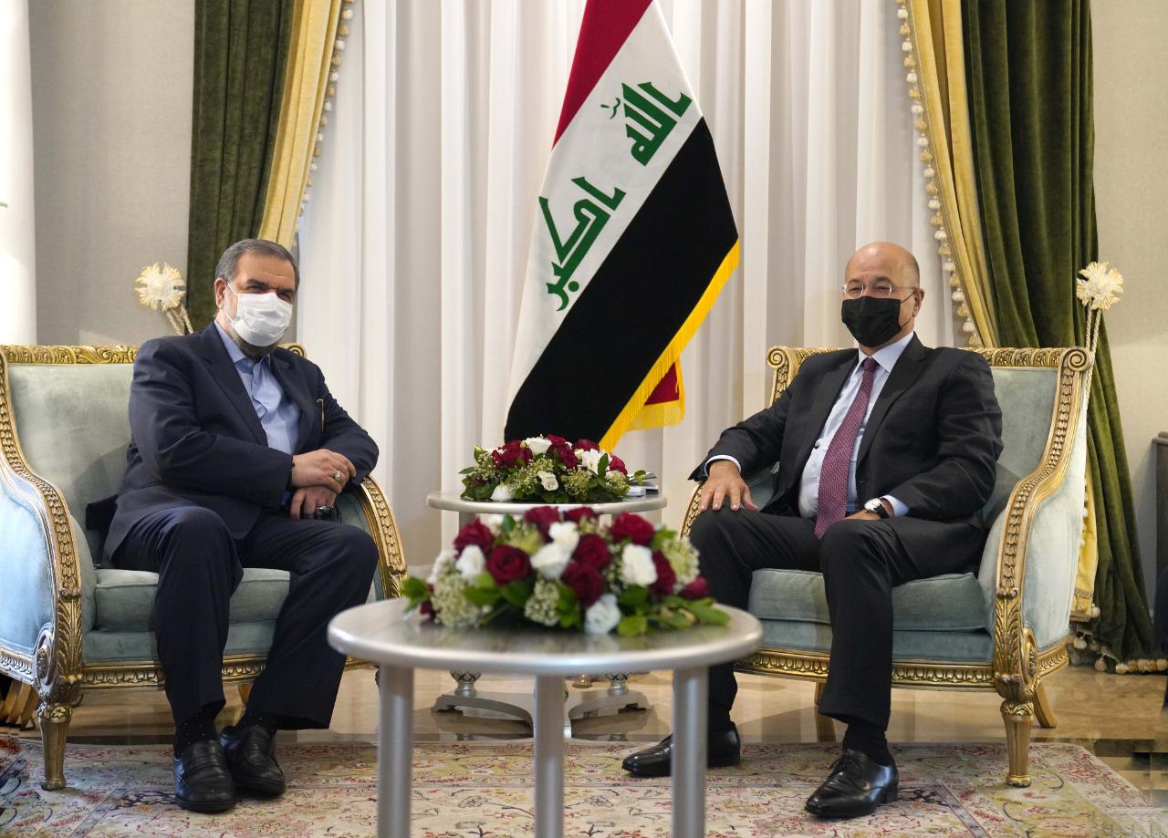 وقال الرئيس برهم صالح، إن العراق يعمل على تعزيز علاقاته المتوازنة ودعم مسارات الحوار والتقارب من اجل إرساء الاستقرار والسلام في المنطقة.