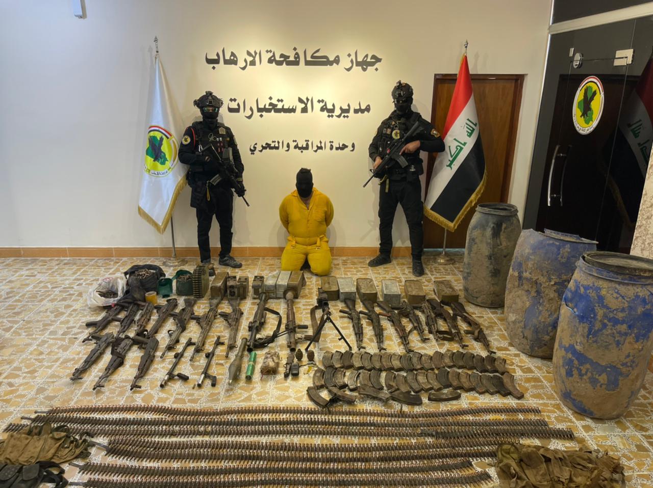 بناءً على توجيهات السيد القائد العام للقوات المسلحة، ومن خلال عملية نوعية، جهاز مُكافحة الإرهاب يلقي القبض على أحد قيادات عصابات داعـش في مايُسمى ولاية شمالي بغداد والذي عمل بمناصب عدة منها ناقل للارهابيين الإنتحاريين وأمر مفرزة أمنية، وقد وأعترف أثناء التحقيق بوجود أكداس للعتاد في قضاء الطارمية تم العثور عليها من قبل أبطال الجهاز بدلالته .