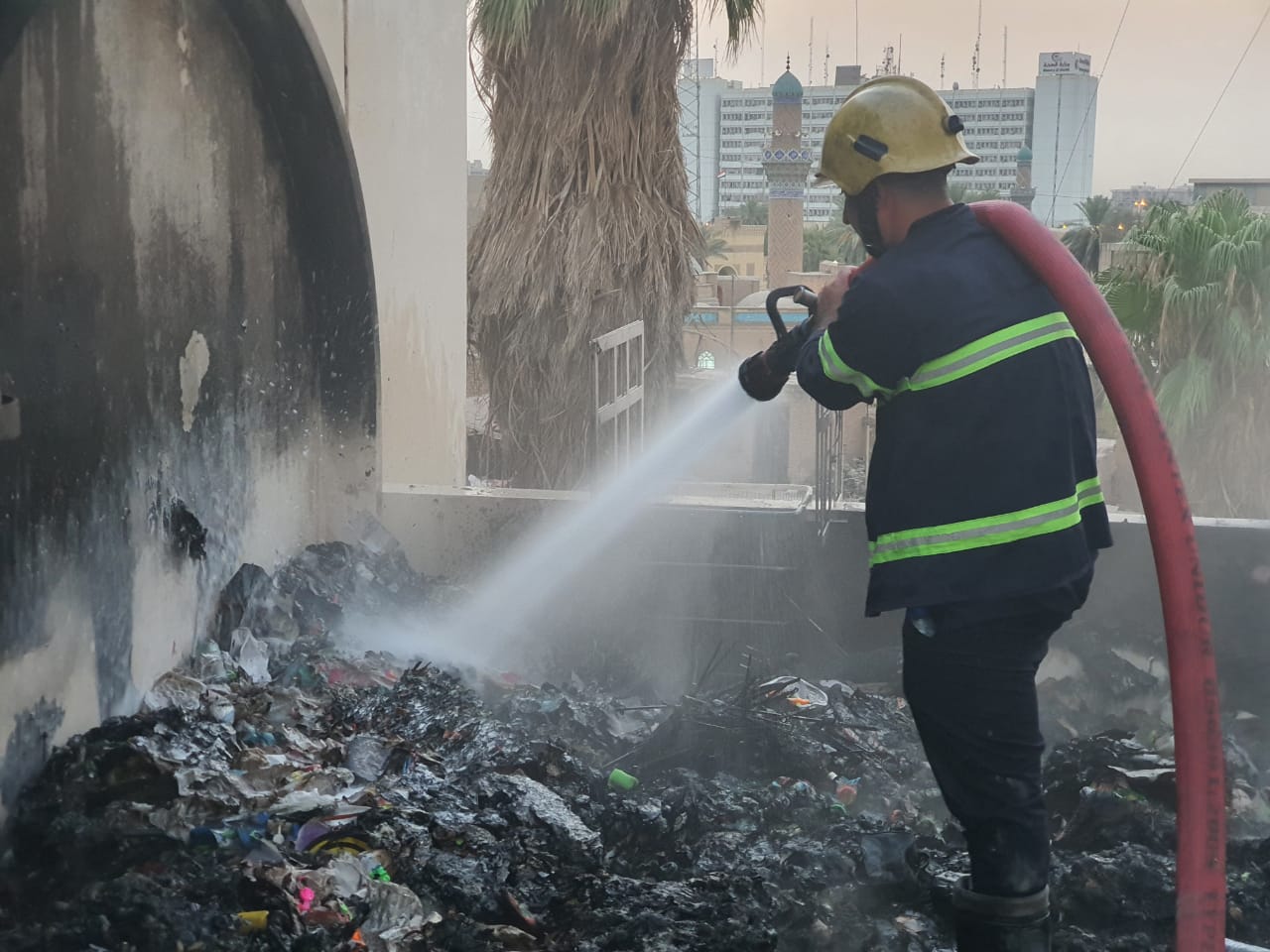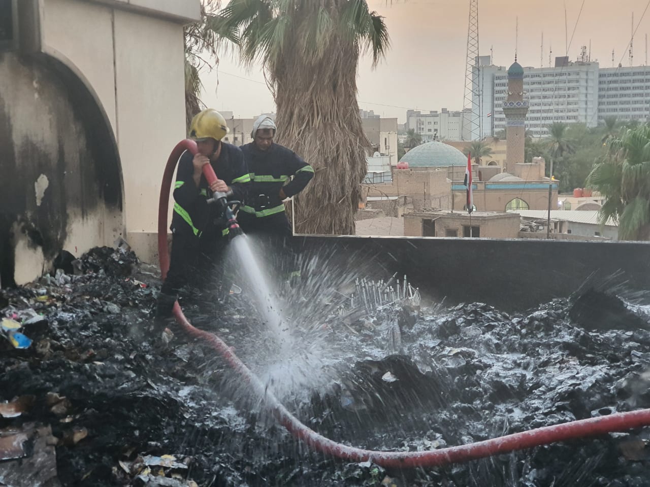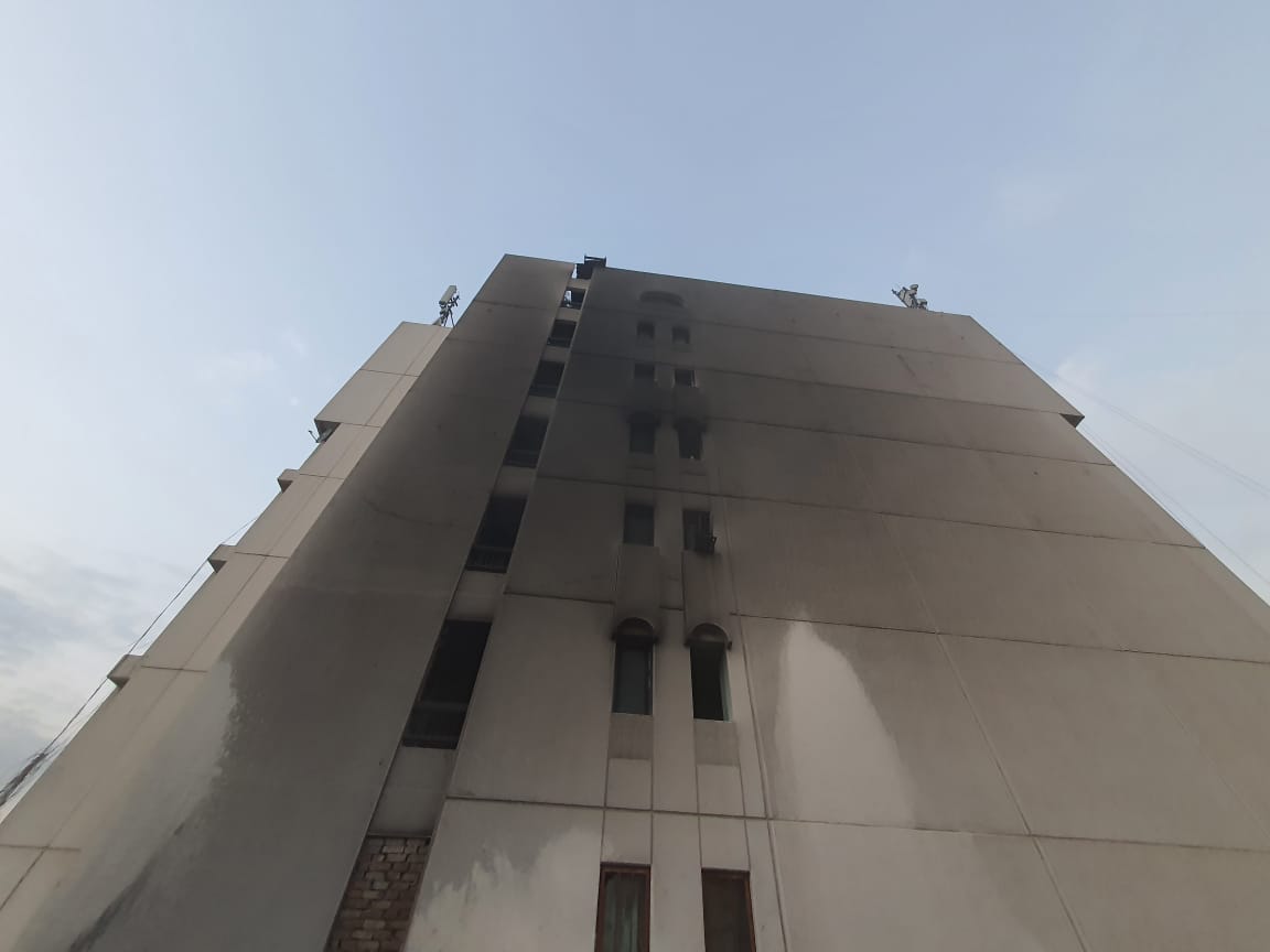 الدفاع المدني يخلي العوائل ويخمد حادث حريق بناية سكنية حكومية وسط بغداد