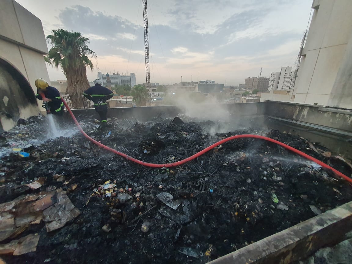واضافت، ان “مديرية الدفاع المدني دفعت بعشرة فرق اطفاء وانقاذ مع زج عجلة السلم المخصصة للأبنية المرتفعة ذات الاستخدام المزدوج اطفاء وانقاذ لتعجيل السيطرة على الحادث الذي اندلع على سطح البناية الذي يحتوي على كميات كبيرة من المستهلكات والنفايات ومنعت فرق الدفاع المدني امتداد النيران إلى طوابق البناية السكنية وانهت الحريق دون تسجيل اصابات بشرية مع تحجيم اضرارها المادية في البناية السكنية المحترقة”.