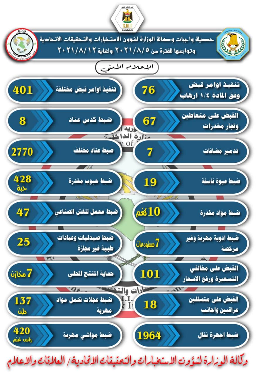 أمنحصيلة واجبات وكالة الاستخبارات الاتحادية خلال اسبوع قبل 5 سنوات 4 مشاهدات شارك وزارة الداخلية العراقية قد يهمك أيضا محليات توجيهات حكومية بالالتزام بالخطة الزراعية وملاحقة التجاوزات على الموارد المائية قبل 8 دقائق 3 مشاهدات عربي ودولي الدفاع السورية تعلن تسلم قاعدة “التنف” وبدء انتشار الجيش على الحدود مع العراق والأردن قبل 51 دقيقة 8 مشاهدات الاخبار العاجلة السفارة الامريكية: نعمل على صون سيادة العراق وملتزمون بالتصدي للأنشطة ايران المزعزعة للاستقرار قبل ساعتين 10 مشاهدات أقتصاد العراق يعتزم تصدير النفط عبر 4 دول قبل ساعتين 11 مشاهدات محليات التربية تعلن إطلاق مشروع نظام إدارة المعلومات التربوية (EMIS) قبل ساعتين 11 مشاهدات