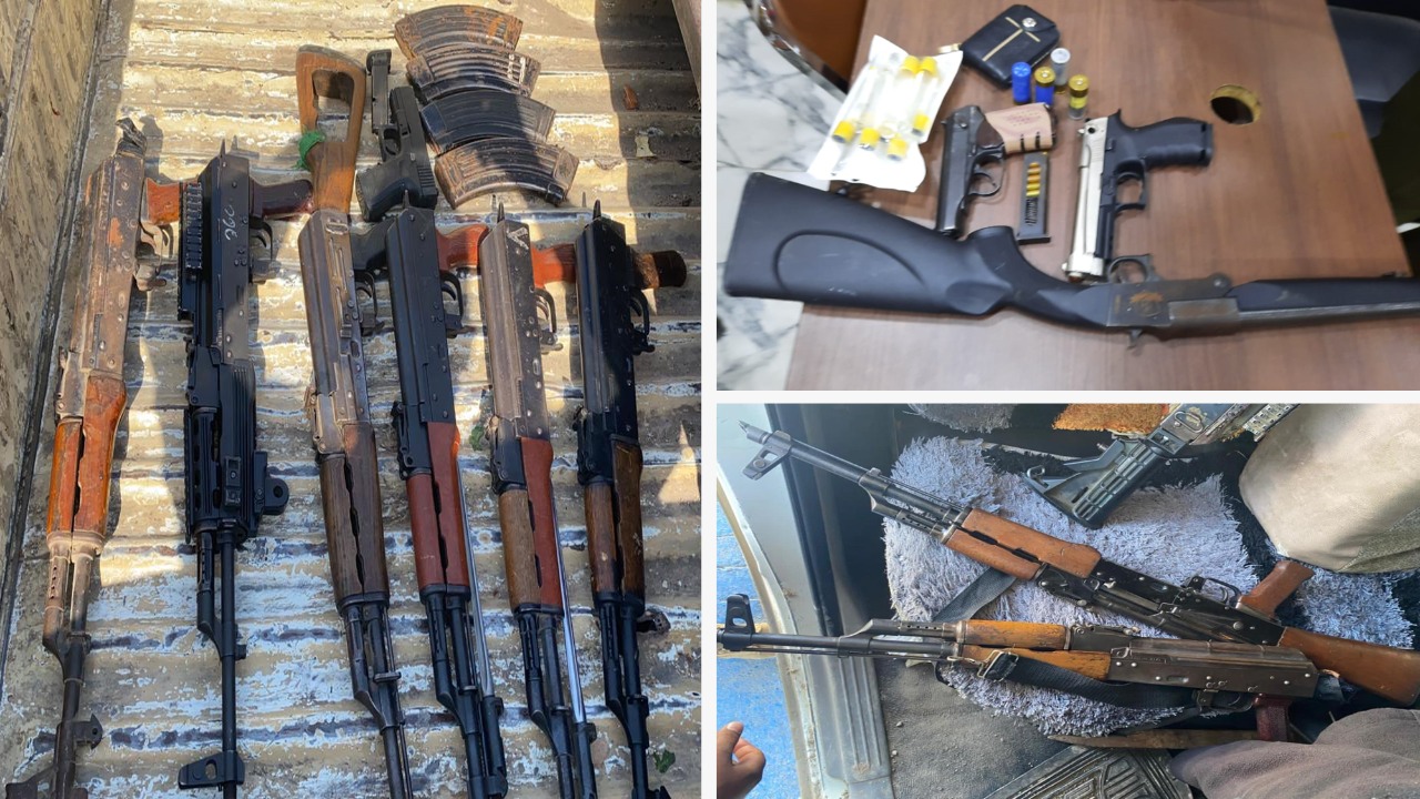 *مصادرة (80) مسدس، و (24) بندقية مختلفة الانواع، و(2690) أطلاقة عتاد مختلفة، ومخازن فارغة وثلاث رمانات يدوية.