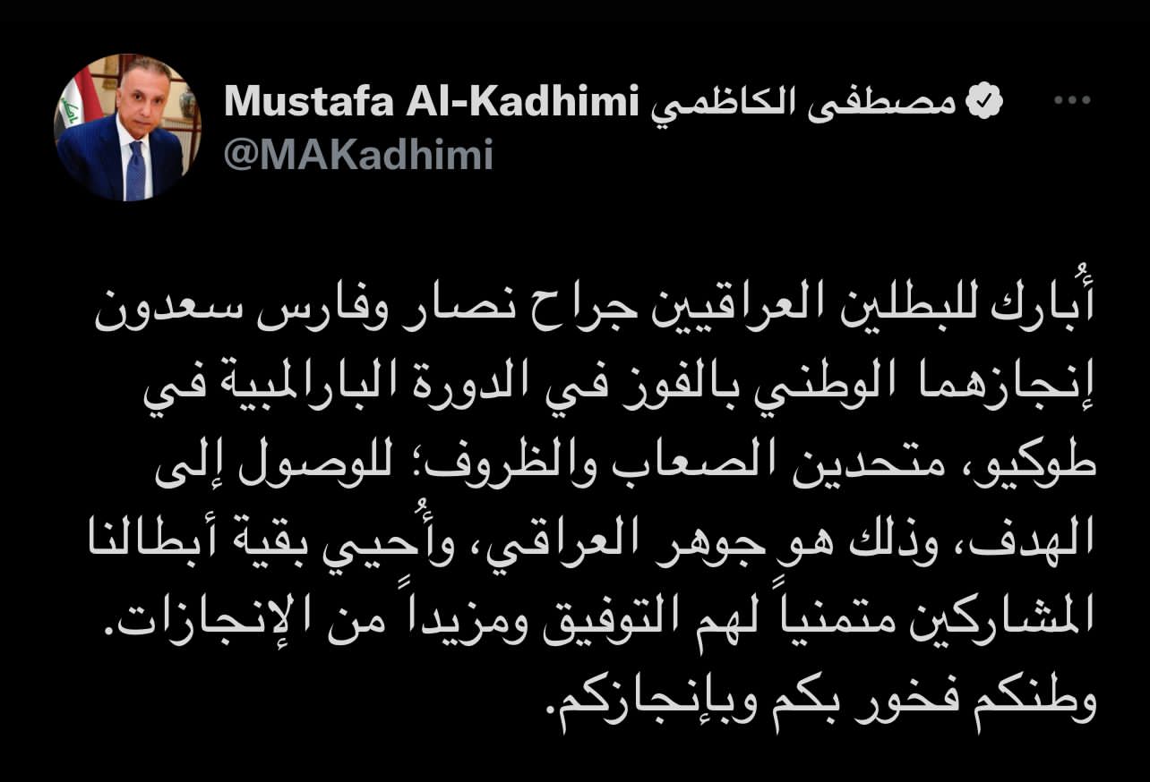 سياسةالكاظمي يبارك لجراح نصار وفارس سعدون بالفوز في الدورة البارالمبية في طوكيو قبل 4 سنوات 3 مشاهدات شارك الوسومالكاظميقد يهمك أيضا الحكم الرابع التحكيم في مهب الريح.. إيقاف رسمي واستقالة لم تكتمل قبل 8 ساعات 12 مشاهدات الاخبار العاجلة إدارة الدولة يؤكد دعمه للإجراءات القانونية والقضائية بشأن سجناء داعش المنقولين من سوريا قبل 8 ساعات 25 مشاهدات سياسة ائتلاف إدارة الدولة يشدد على ضرورة مساندة الإصلاحات الاقتصادية التي تبنتها الحكومة قبل 8 ساعات 12 مشاهدات سياسة ائتلاف ادارة الدولة يعرب عن ترحيبه ودعمه للمفاوضات بين الولايات المتحدة وايران قبل 8 ساعات 11 مشاهدات مع ياسر عامر المالكي عقدة الاطار! قبل 8 ساعات 14 مشاهدات