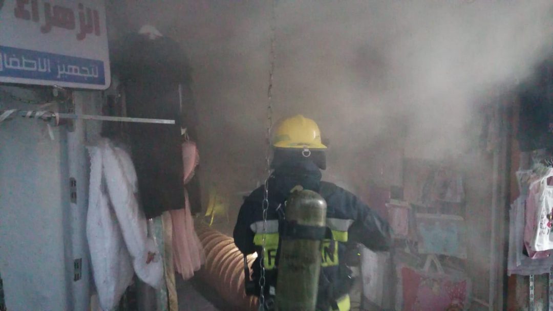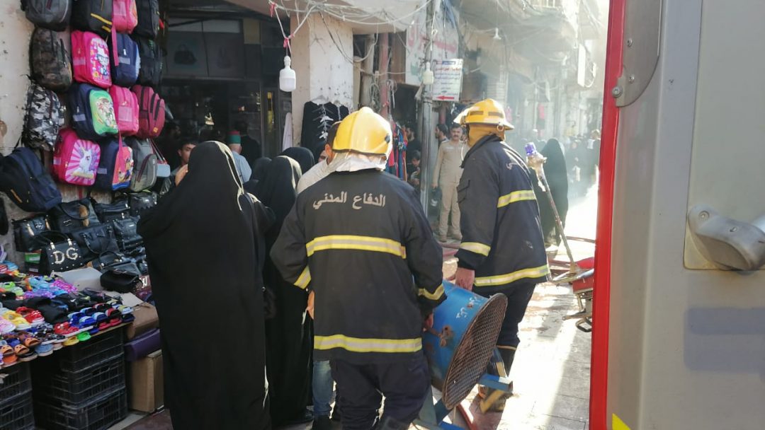 بالصور.. فرق الدفاع المدني تخمد حريقا اندلع بمخزن ملابس في النجف