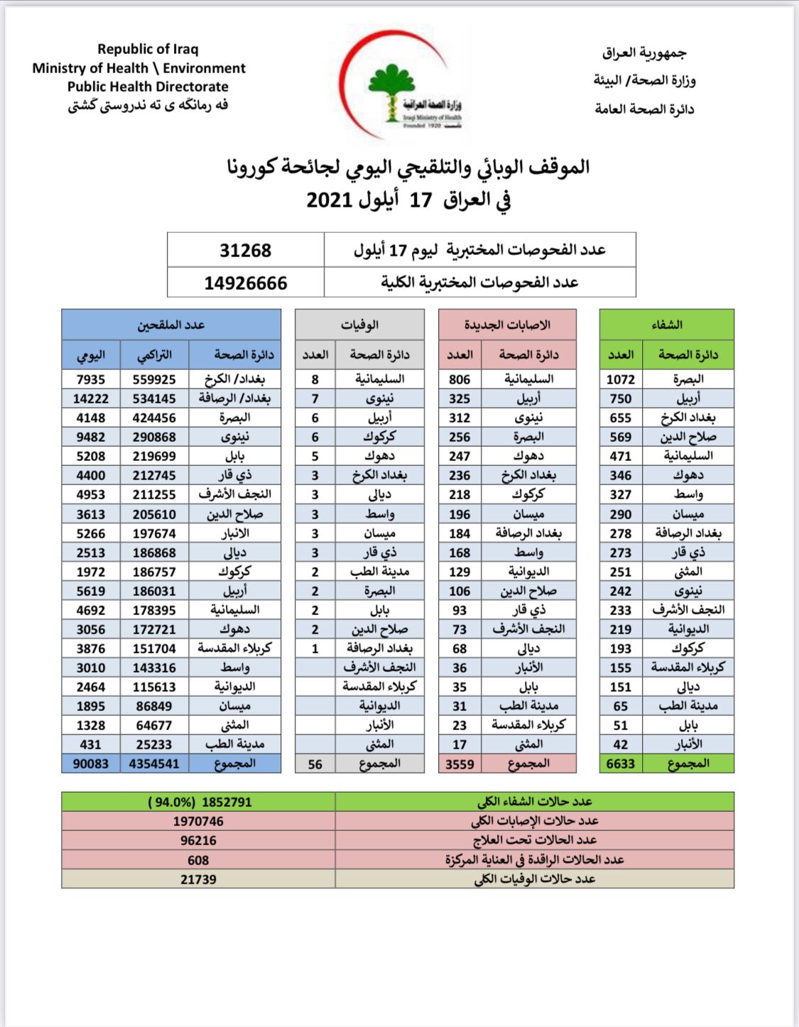 محلياتالعراق يسجل 3559 اصابة جديدة بفيروس كورونا قبل 4 سنوات 3 مشاهدات شارك اعلنت وزارة الصحة، الجمعة، تسجيل 3559 اصابة جديدة بفيروس كورونا خلال الـ24 ساعة الماضية. الوسومكوروناقد يهمك أيضا أقتصاد مصرف الرشيد ينفي عدم توفر سيولة أو الاستيلاء على أموال الزبائن قبل 8 دقائق 2 مشاهدات محليات بالوثيقة.. صدور مذكرة قبض بحق "حسين العنكوشي" بتهمة إهانة رمز ديني بطريقة علنية قبل 15 دقيقة 7 مشاهدات أقتصاد العمل تعلن إطلاق راتب المعين المتفرغ لشهر كانون الأول قبل 43 دقيقة 8 مشاهدات عربي ودولي حماس: الاحتلال يعرقل الانتقال للمرحلة الثانية من اتفاق وقف إطلاق النار في غزة قبل 45 دقيقة 5 مشاهدات عربي ودولي وزير الخارجية السوري: العلاقات مع روسيا تدخل مرحلة جديدة قبل ساعة واحدة 6 مشاهدات