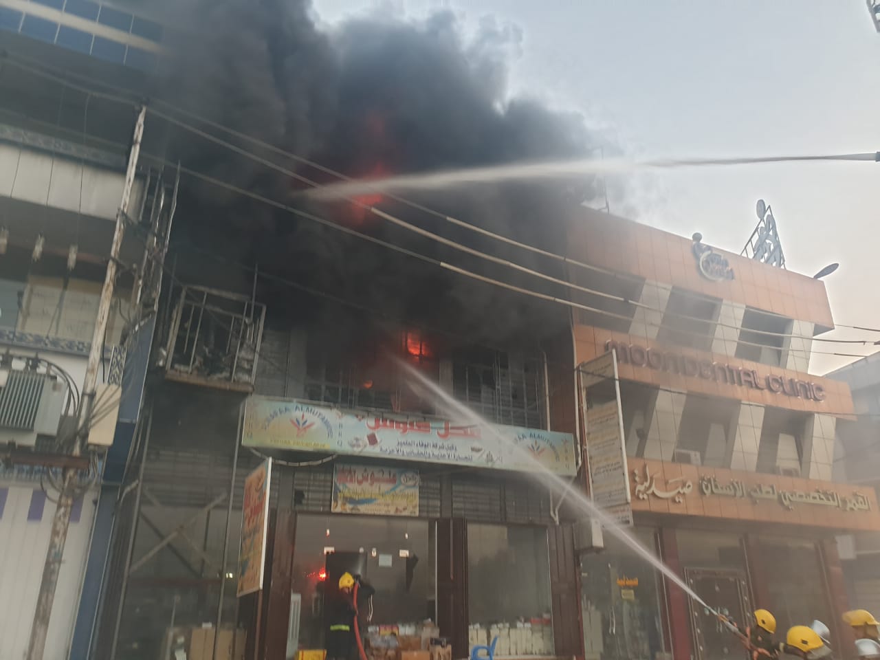 الدفاع المدني يعلن السيطرة على حريق اندلع داخل بناية تجارية في مدينة الحلة