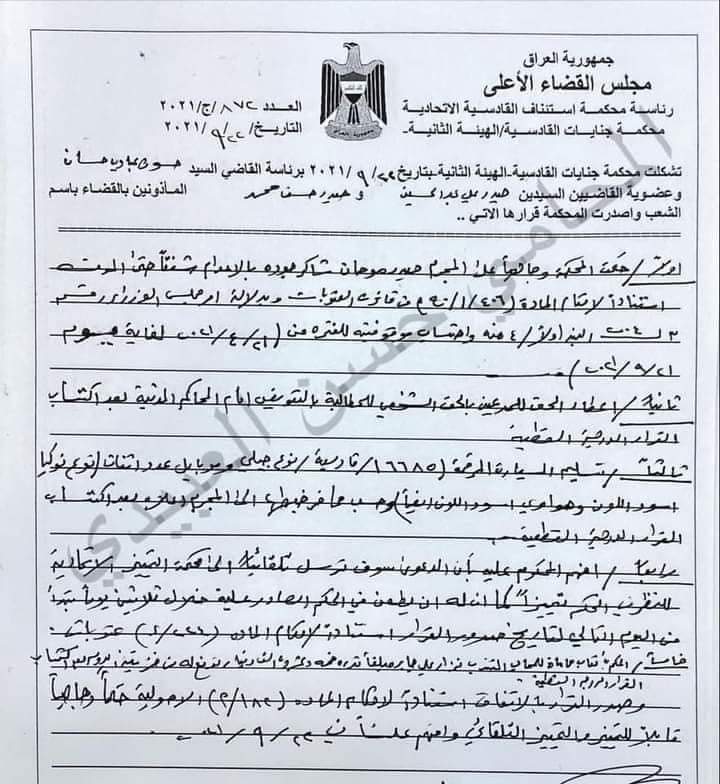 أمنبالوثيقة.. الاعدام شنقا لقاتل التربوية مريم الخفاجي في الديوانية قبل 4 سنوات 8 مشاهدات شارك الوسومالتربوية مريم الخفاجيالديوانيةقد يهمك أيضا محليات مؤسسة الشهداء: لا قرار بقطع رواتب ذوي الشهداء قبل 25 كانون الثاني قبل 16 دقيقة 3 مشاهدات أقتصاد الذهب يسجل مستوى قياسياً جديداً مع تصاعد التوتر بين أميركا وفنزويلا قبل 28 دقيقة 7 مشاهدات عربي ودولي ترامب: ناقلات النفط المصادرة من فنزويلا ستبقى تحت سيطرتنا قبل ساعة واحدة 6 مشاهدات محليات طقس العراق.. أمطار خفيفة وانخفاض بدرجات الحرارة خلال الأيام المقبلة قبل ساعتين 12 مشاهدات أقتصاد النفط يتراجع مع ترقب خطوة أميركية بشأن خام فنزويل قبل ساعتين 8 مشاهدات