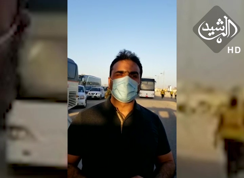 رئيس هيئة المنافذ الحدودية اللواء عمر الوائلي يؤكد من امام البوابة العراقية في منفذ الشلامجة الحدودية، لاصحة للاخبار المتداولة حول كسر البوابة ودخول اعداد من الزائرين.