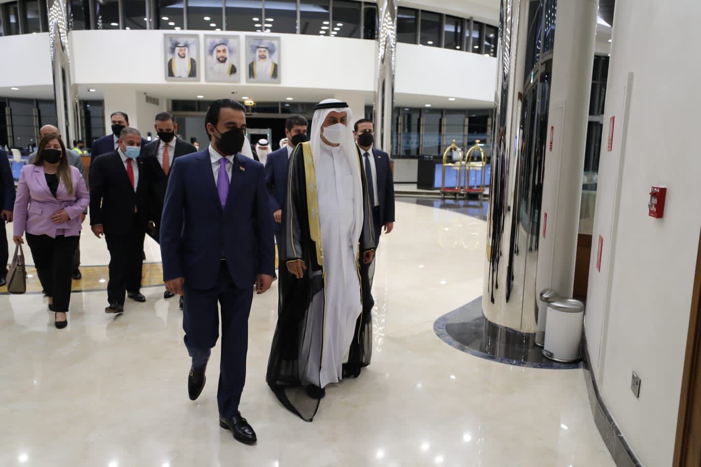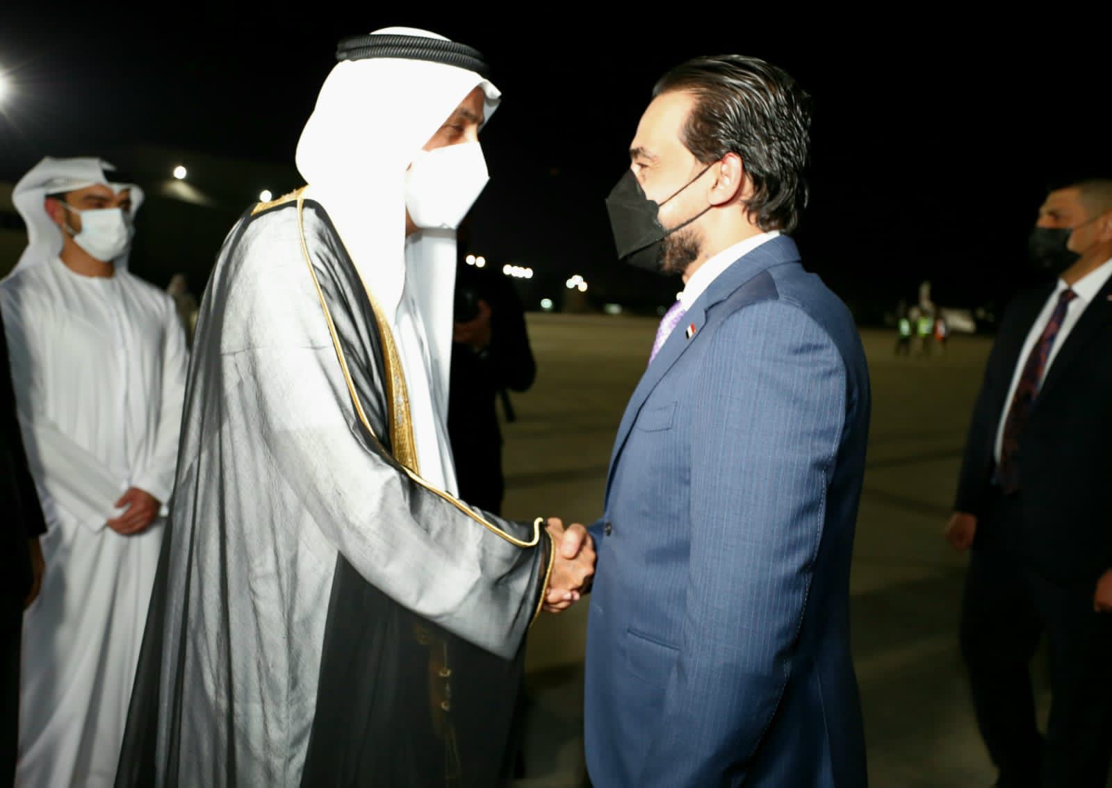 واضاف، انه “كان في استقبال الحلبوسي رئيس المجلس الوطني الاتحادي الإماراتي صقر غباش”.