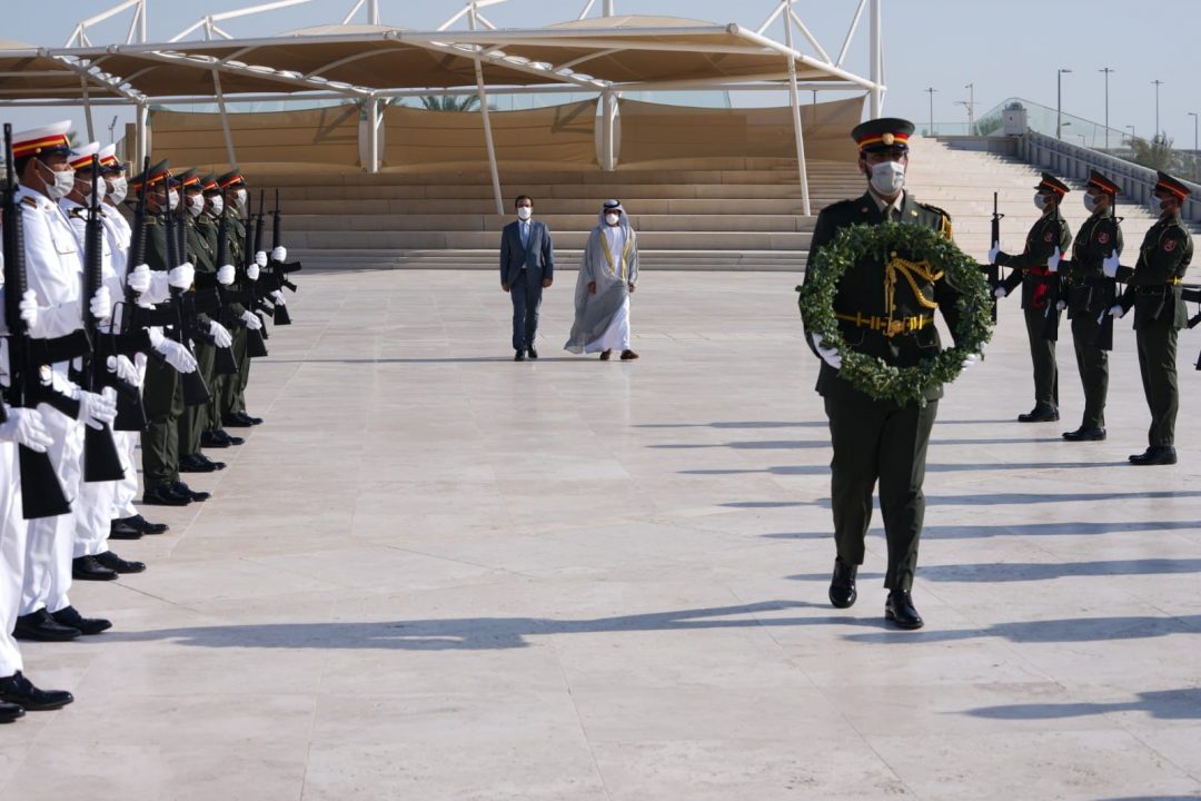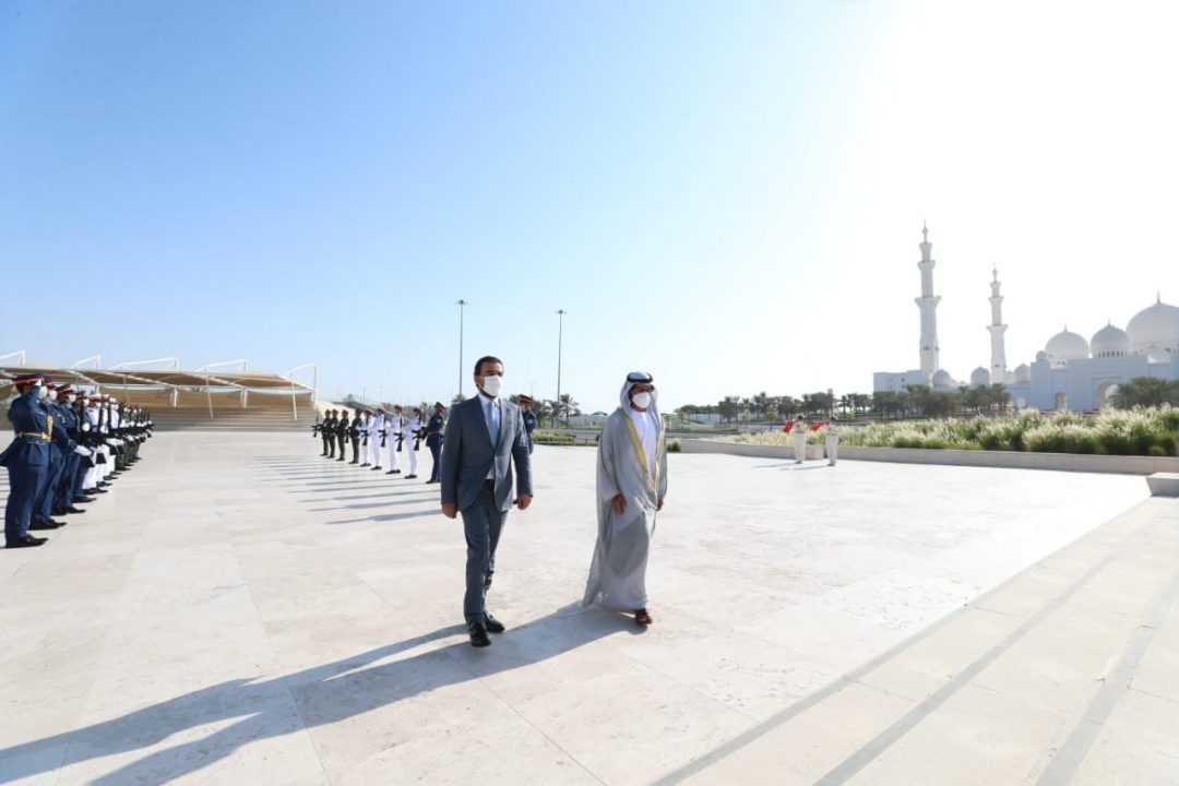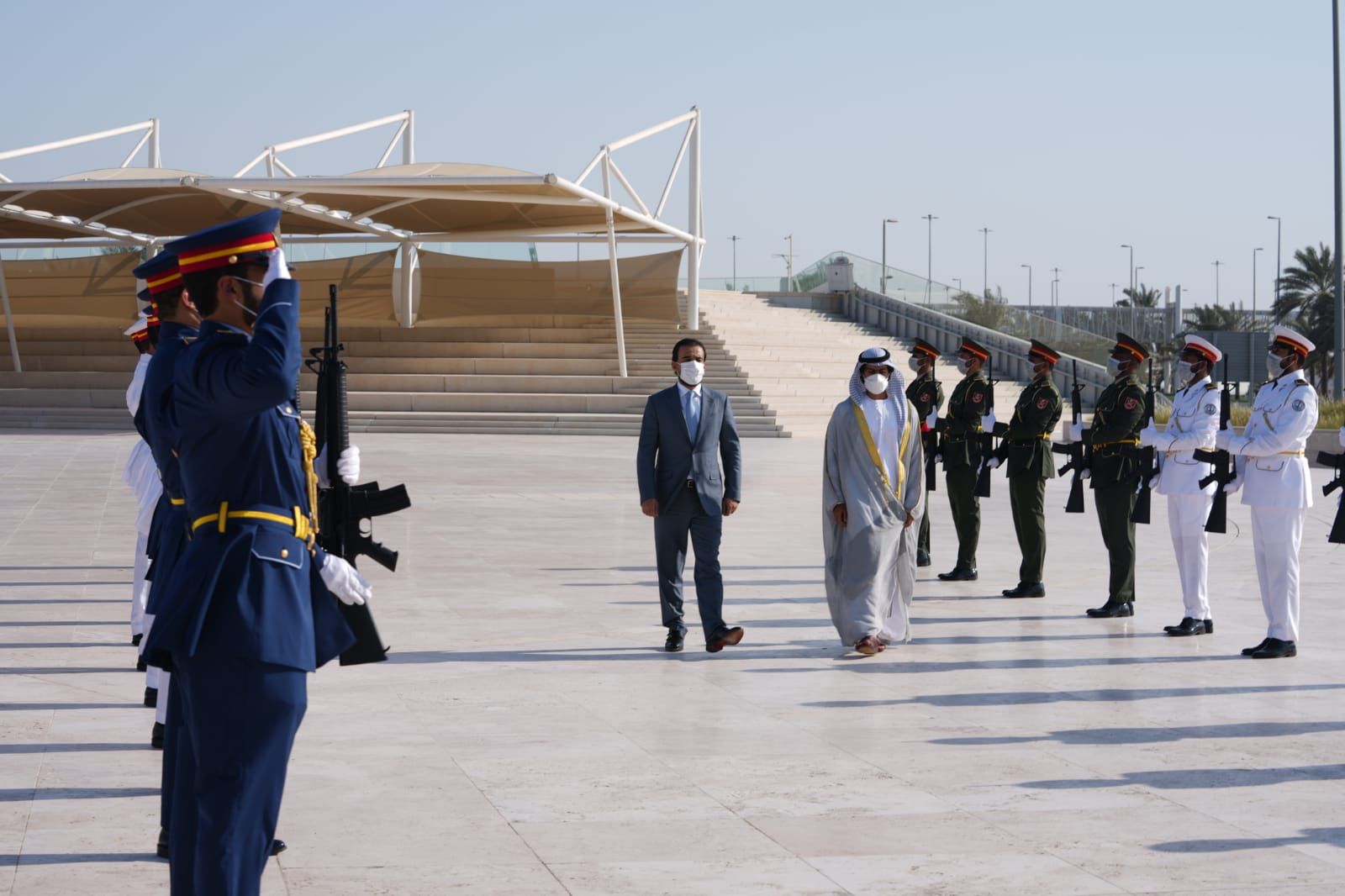 واضاف، ان “الشيخ خليفة بن طحنون كان باستقبال رئيس البرلمان، حيث جرى استعراض مراسم الشرف ووضع إكليل من الزهور، فيما قدَّم الشيخ خليفة خلال الجولة شرحاً عن واحة الكرامة ومرافقها”.