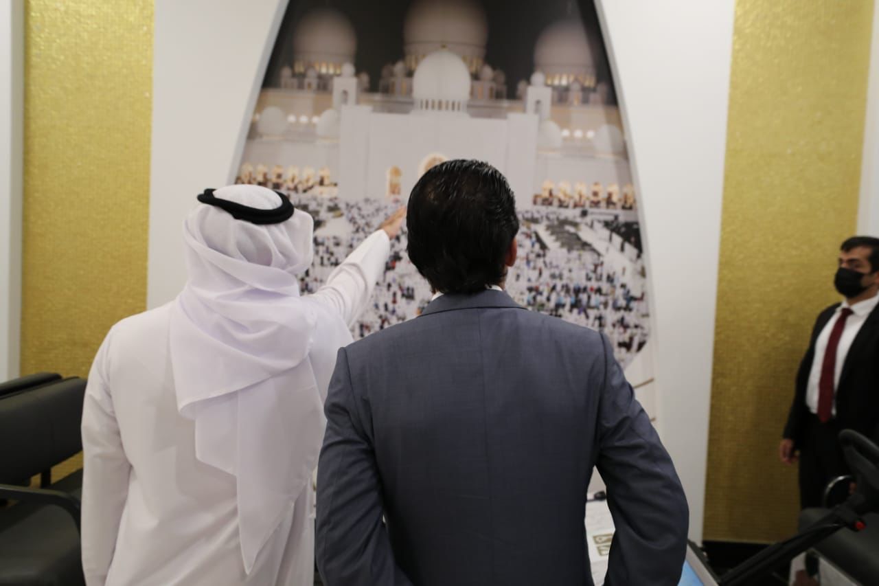زار رئيس البرلمان محمد الحلبوسي، اليوم الاحد، مسجد الشيخ زايد وواحة الكرامة في امارة ابو ظبي.
