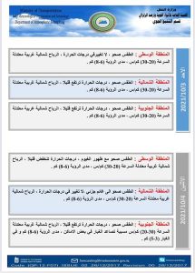 أعلنت هيئة الأنواء الجوية، الخميس، عن انخفاض الحرارة اعتبارا من يوم الاثنين المقبل.