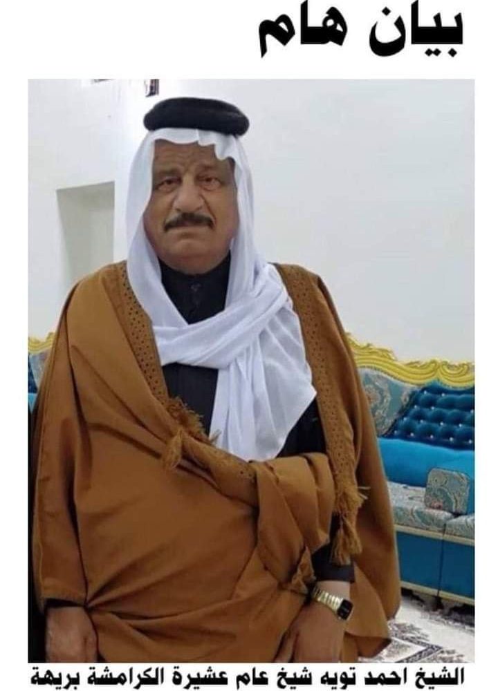 اعلنت عشيرة الكرامشة، الخميس، اعتقال شيخها في البصرة احمد تويه الكرمشي.